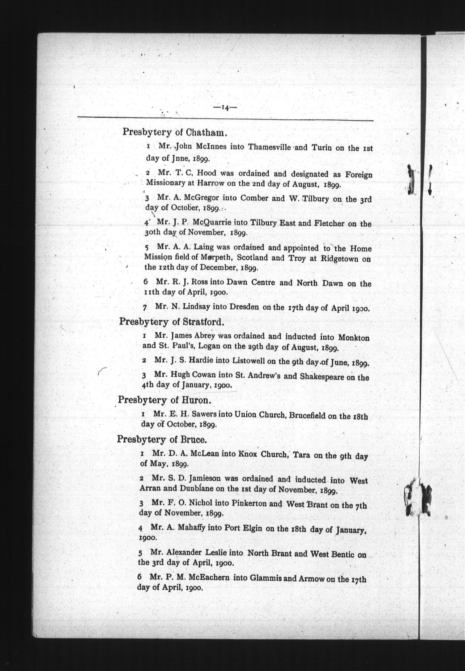 [Ontario] : [Synod of Hamilton and London, of the Presbyterian Church in Canada], [1900]; 33 images, 32 avec recherche en texte intégral