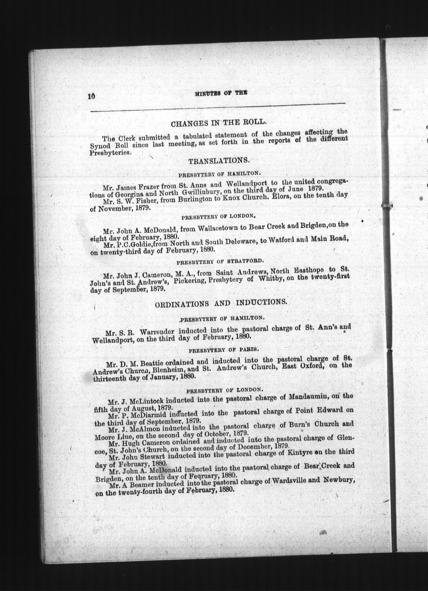 Minutes of the Synod of Hamilton and London, of the Presbyterian Church in Canada : held in St. Catharines, April 13th, 14th, and 15th, 1880 : 1880