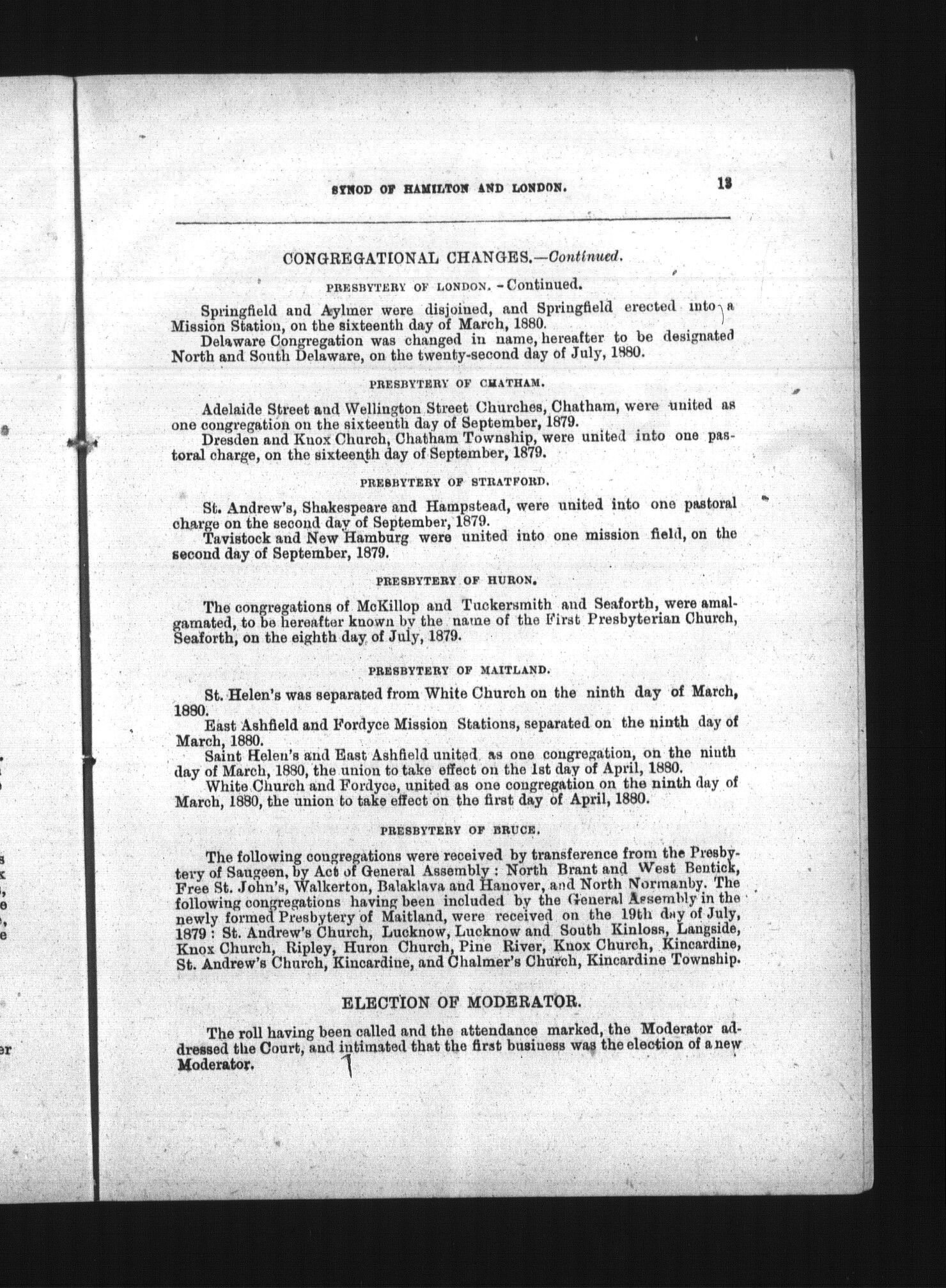 Minutes of the Synod of Hamilton and London, of the Presbyterian Church in Canada : held in St. Catharines, April 13th, 14th, and 15th, 1880 : 1880