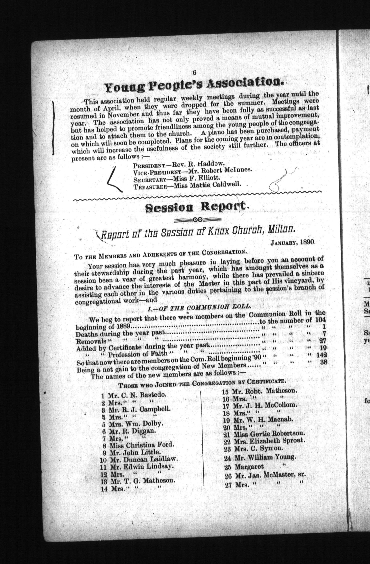 Report ... / : Report, 1889 / Knox Church, Milton : 1889