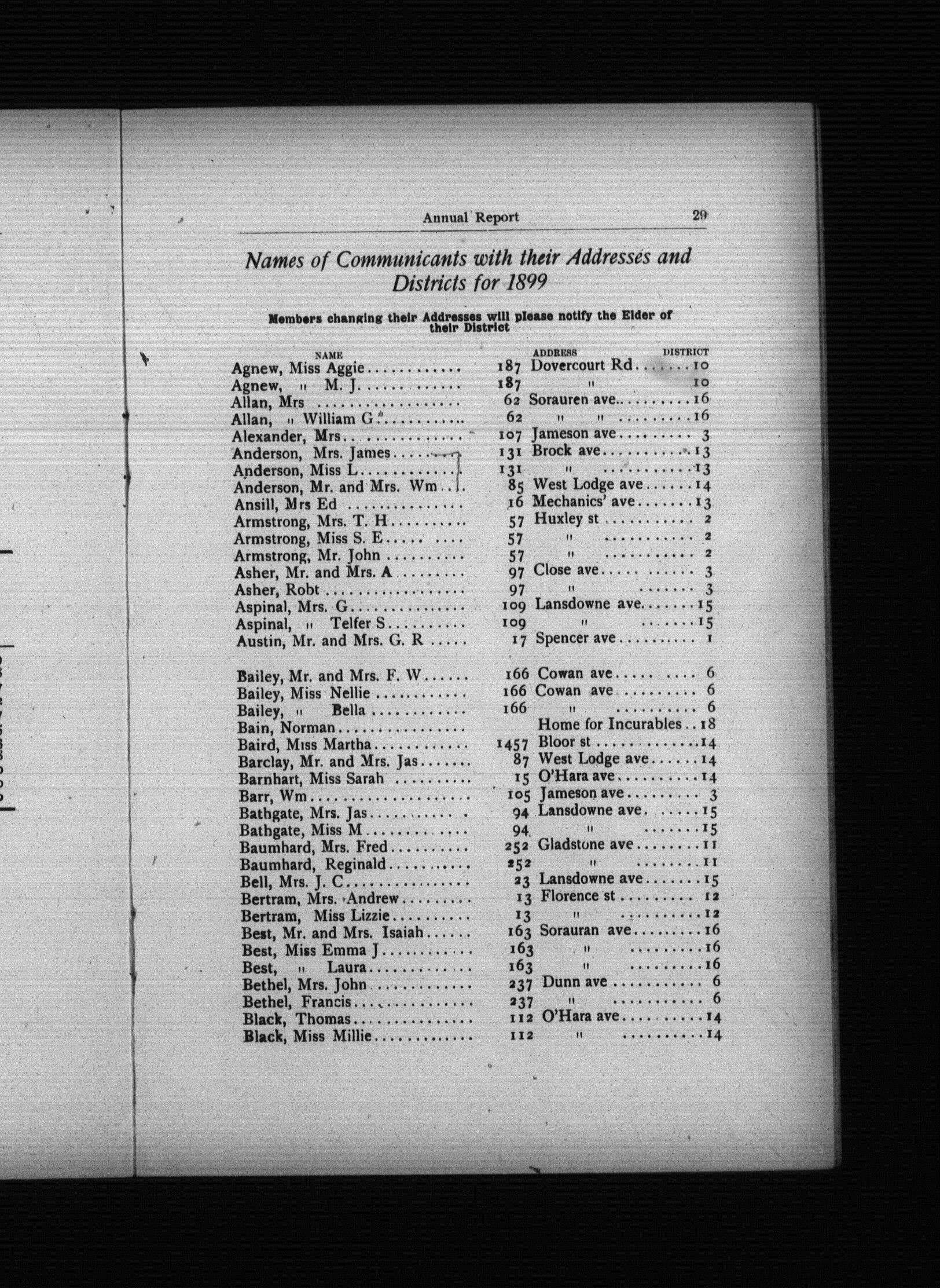 - [Toronto] : [Parkdale Presbyterian Church], 1899?]