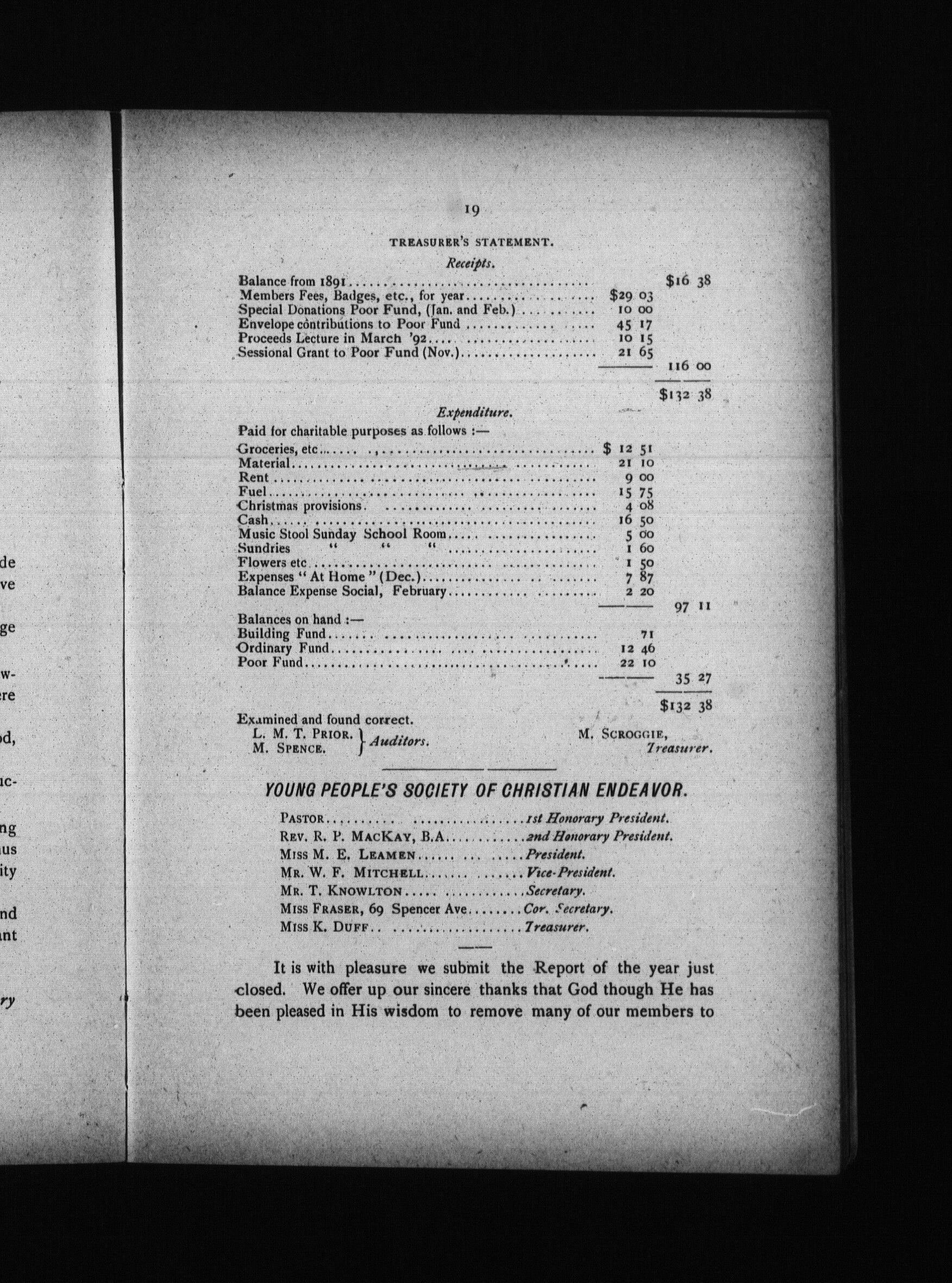 - Annual report of the Parkdale Presbyterian Church, Toronto, for the year ending Dec. 31, 1892 : Fourteenth (1892)