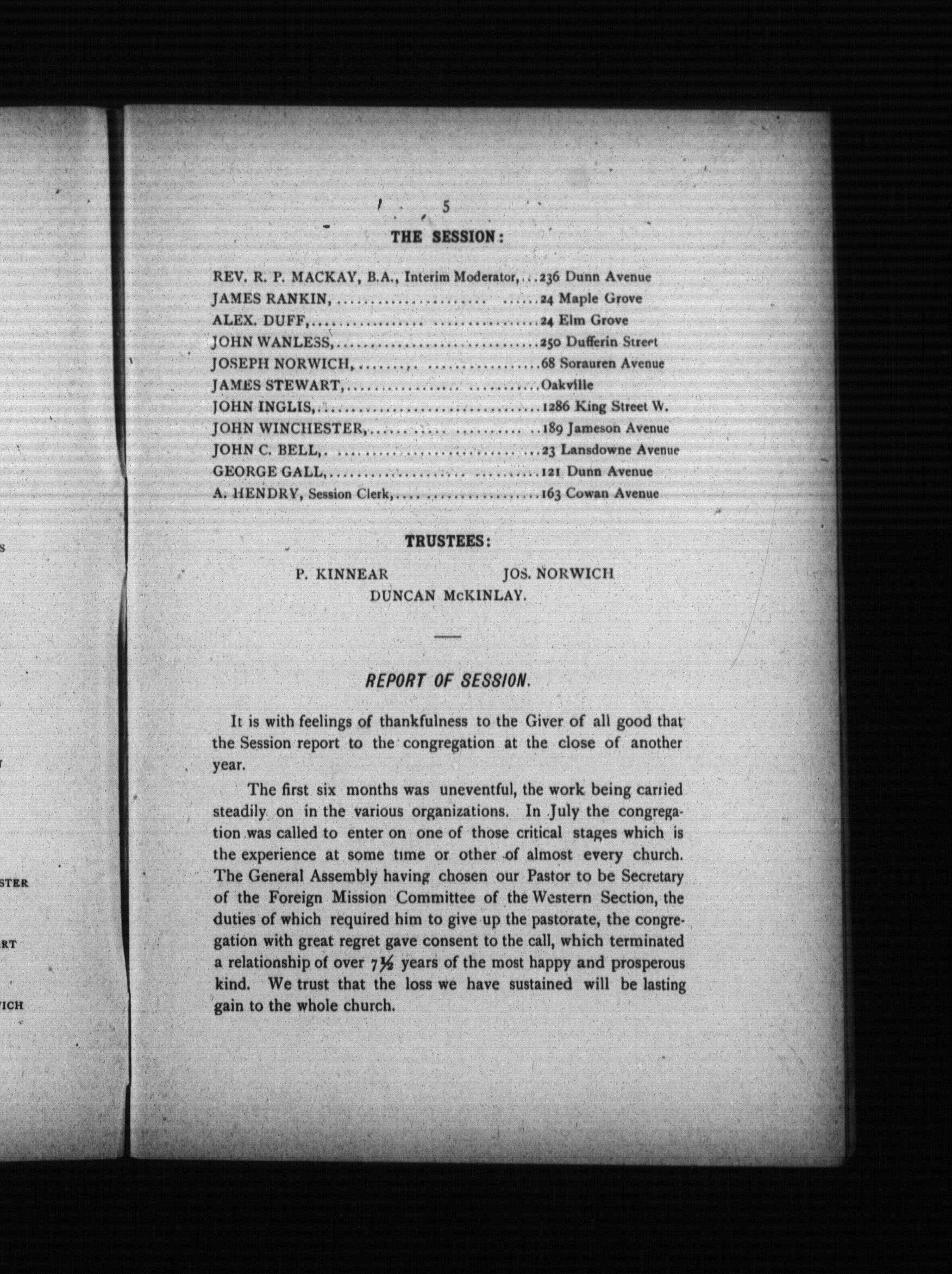 - Annual report of the Parkdale Presbyterian Church, Toronto, for the year ending Dec. 31, 1892 : Fourteenth (1892)