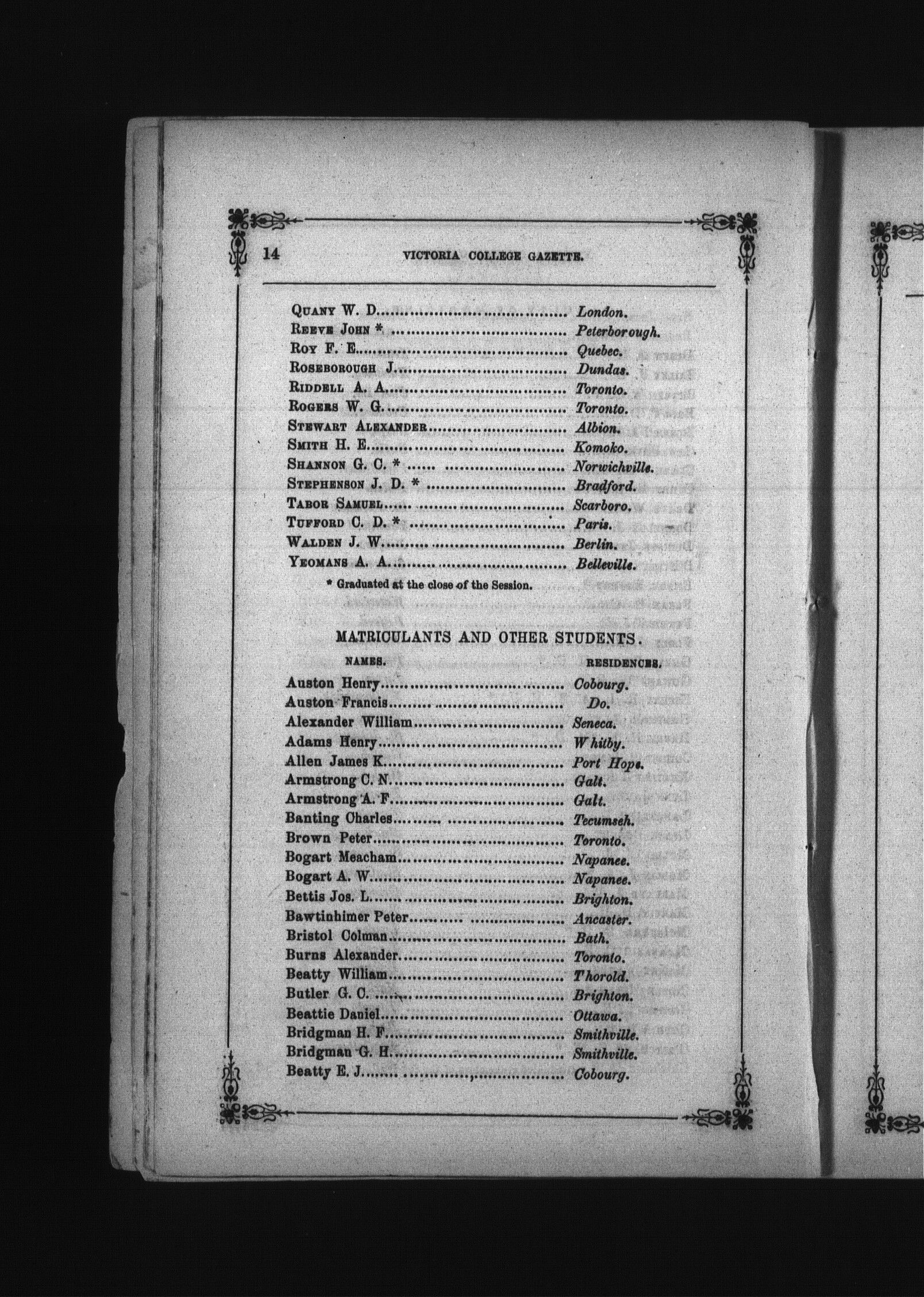 [Cobourg, Ont.?] : [Victoria College], 1857; 28 images with full-text search