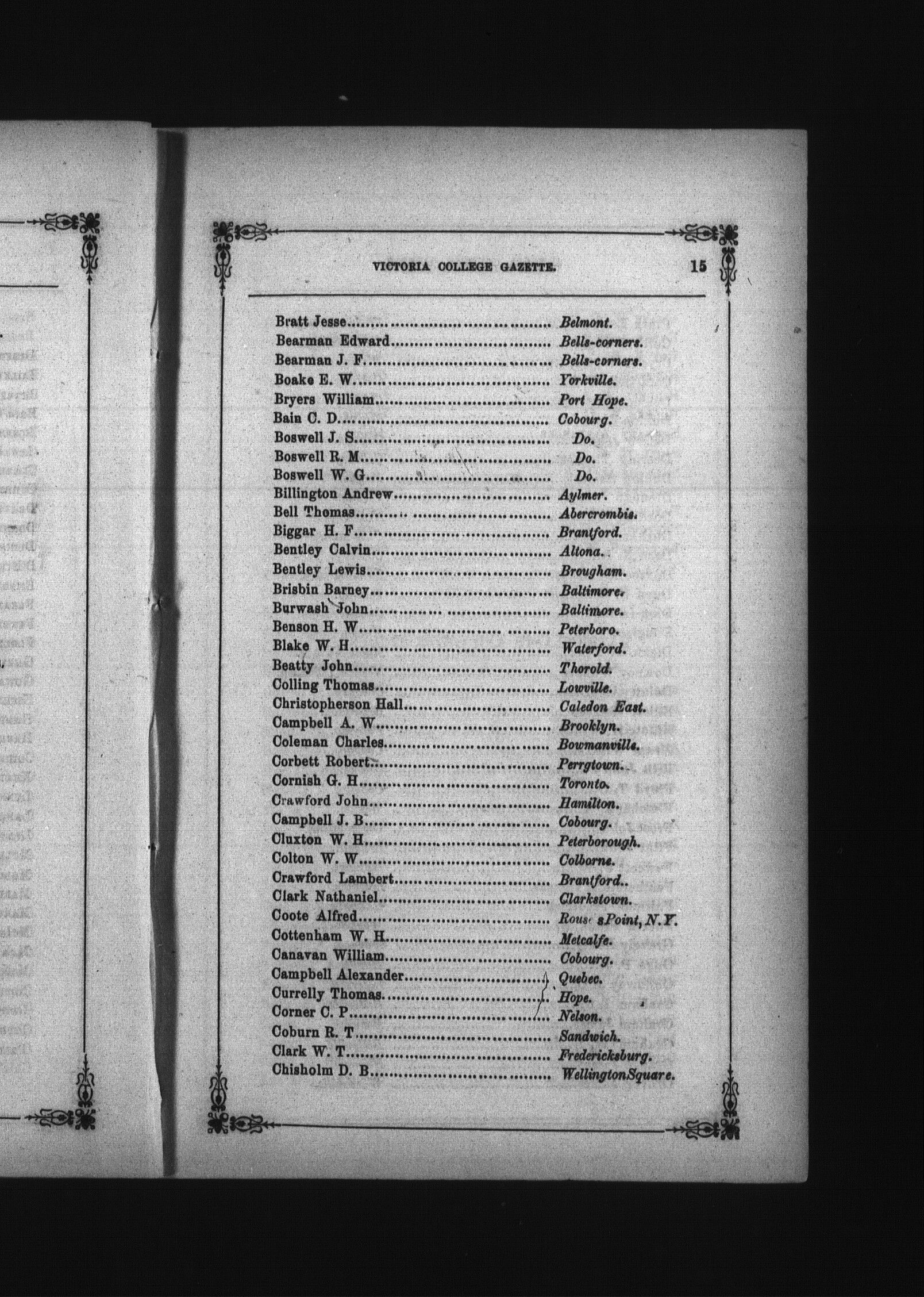 [Cobourg, Ont.?] : [Victoria College], 1857; 28 images with full-text search