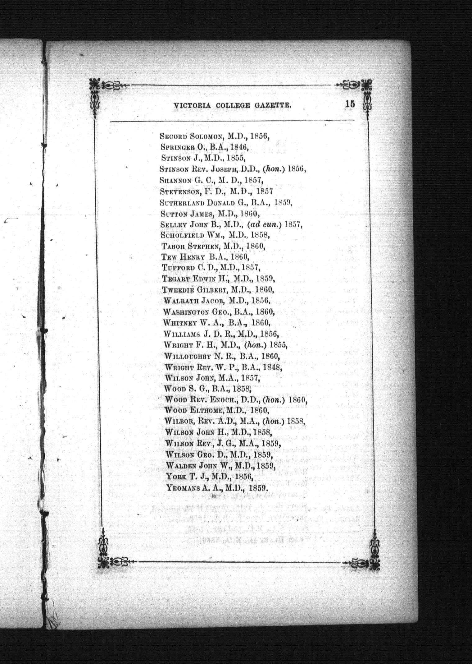 - Gazette of the University of Victoria College, Cobourg, for the academic year 1860-61 : 1860/61
