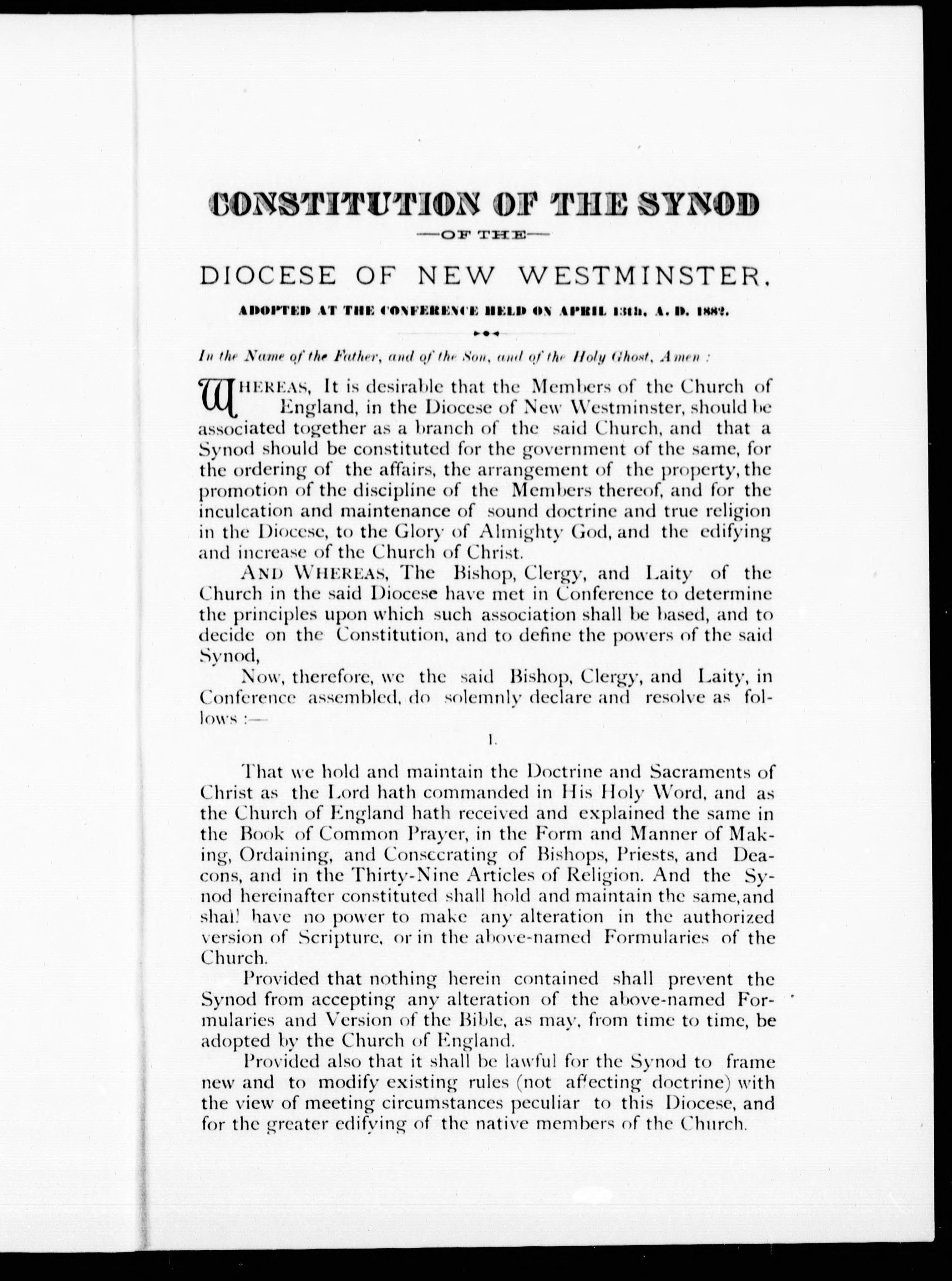 [New Westminster, B.C.]: [Diocese of New Westminster], 1883; 34 images, 33 avec recherche en texte intégral