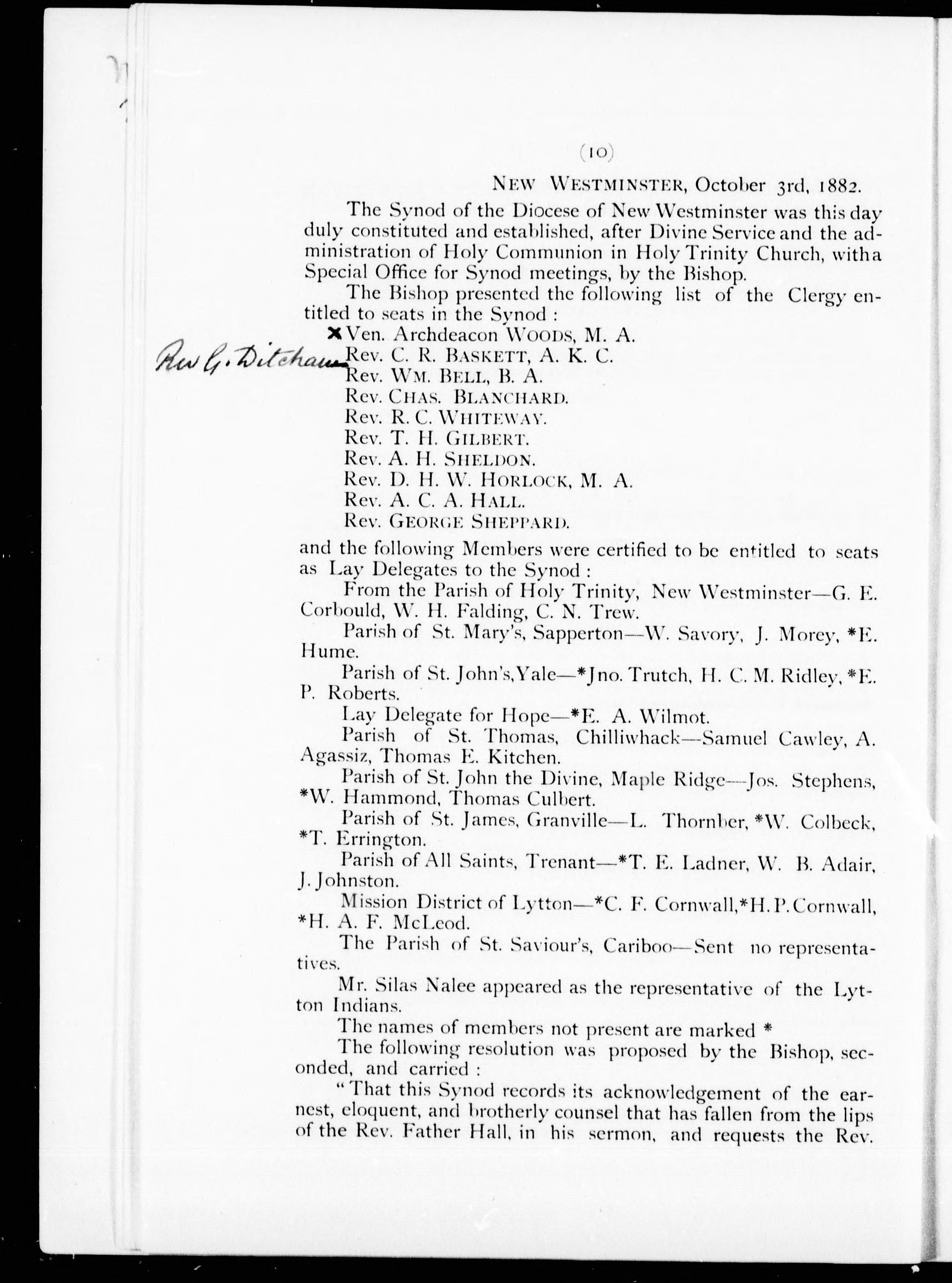 Journal of the ... meeting of the Diocesan Synod ... / : Journal of the first meeting of the Diocesan Synod : held at New Westminster, Oct. 3rd, in the year of Our Lord 1882 : First (1882)