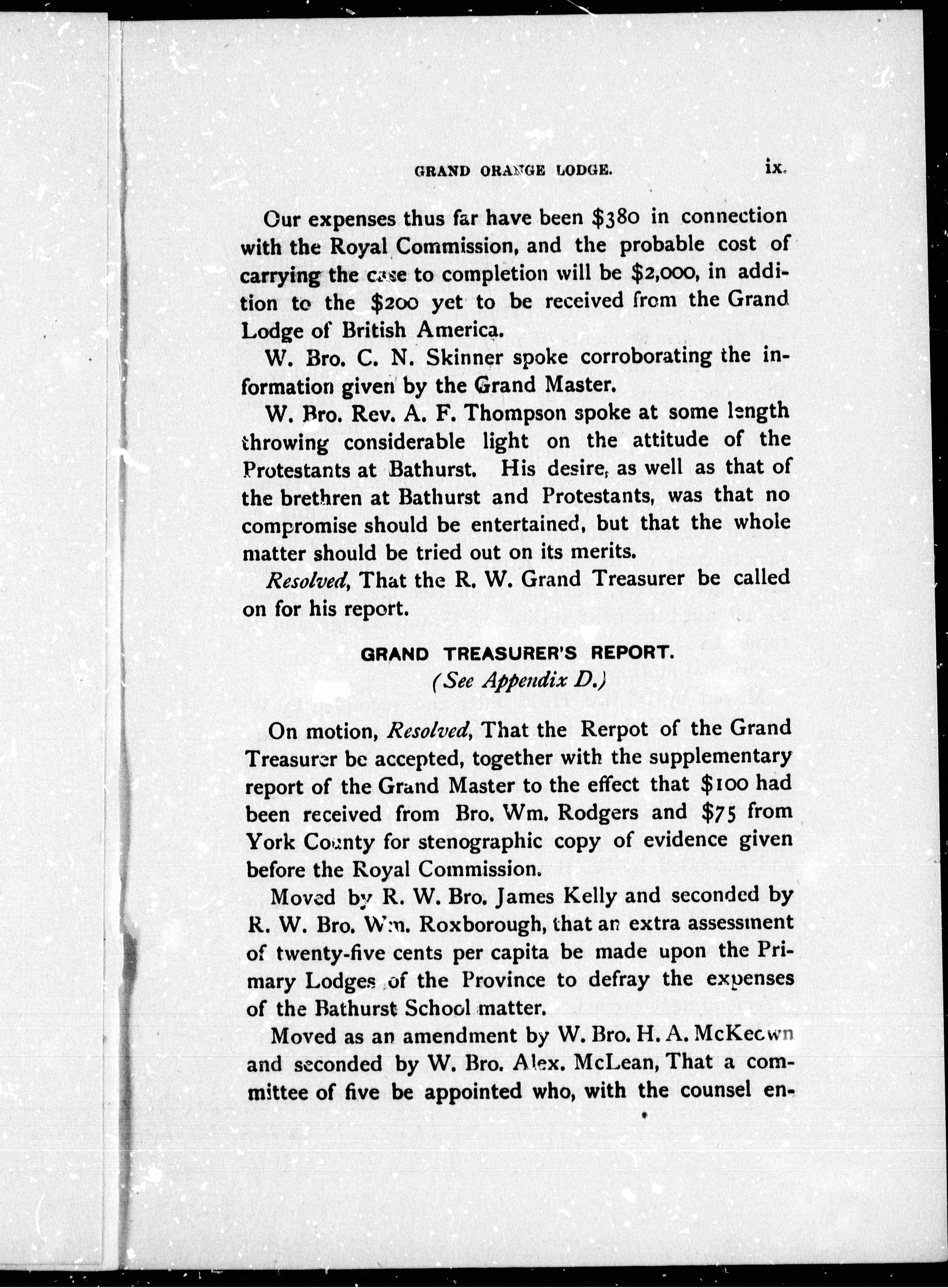 Report of the ... annual session of the Right Worshipful the Grand Lodge of New Brunswick / : Reports of the Special and fifty-first annual sessions of the Right Worshipful Provincial Grand Orange Lodge of New Brunswick : held respectively in the Orange halls, St. John and Fairville, N.B., on Friday, Oct. 13th, 1893, and Tuesday, Wednesday and Thursday, Feb. 20th, 21st and 22d, 1894 : Special (1893)/Fifty-First (1894)