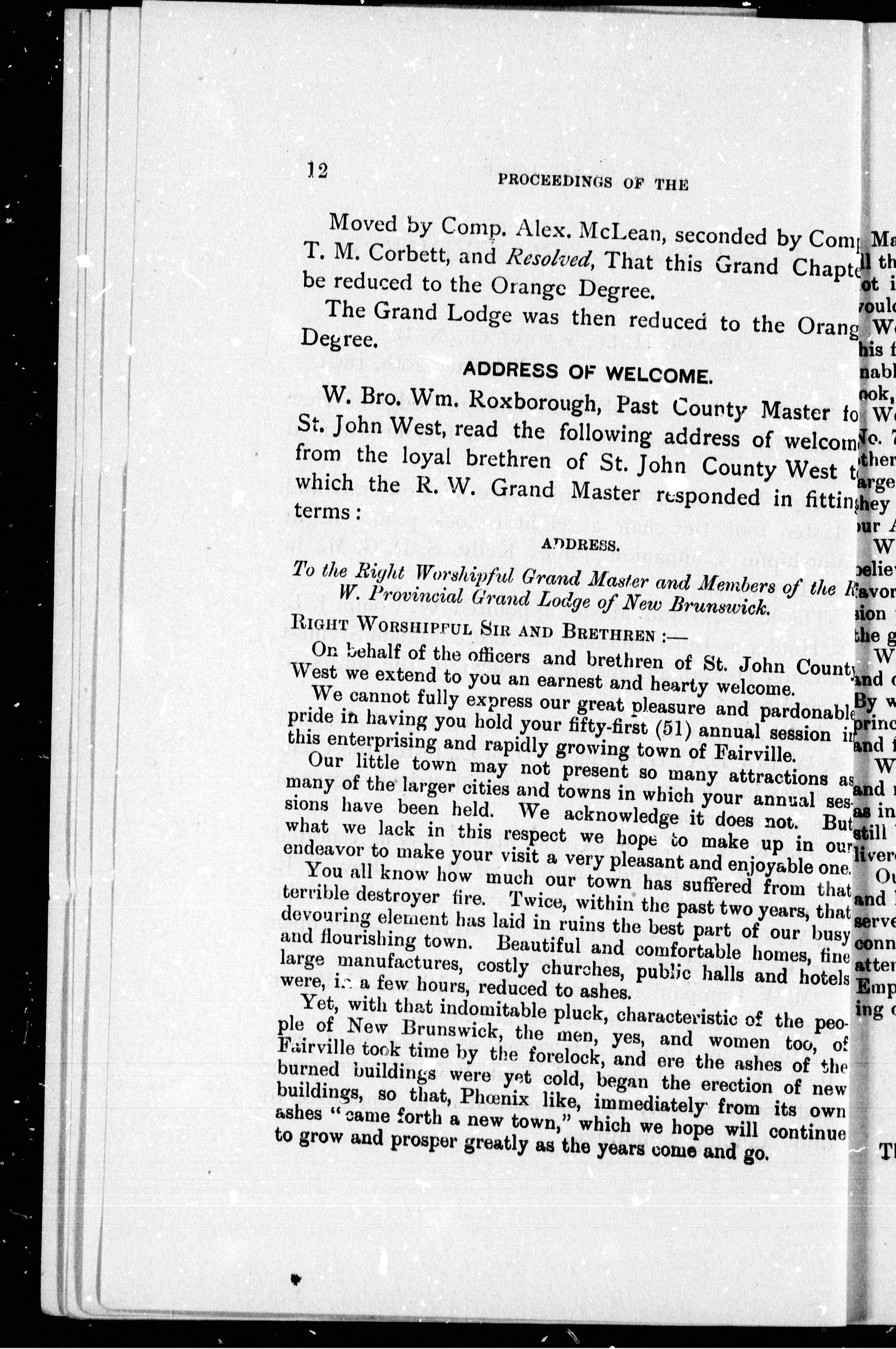 [Saint John, N.B.?]: [Right Worshipful the Grand Lodge of New Brunswick, Loyal Orange Association of British America], 1894; 103 images, 100 avec recherche en texte intégral