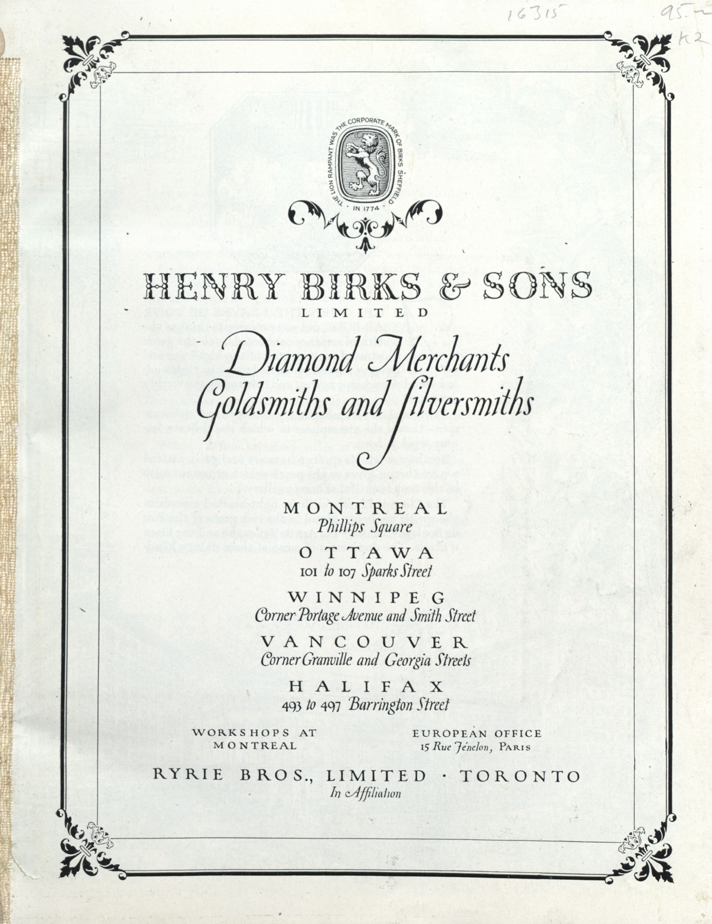 - [Montréal] : [Henry Birks & Sons], [1920]