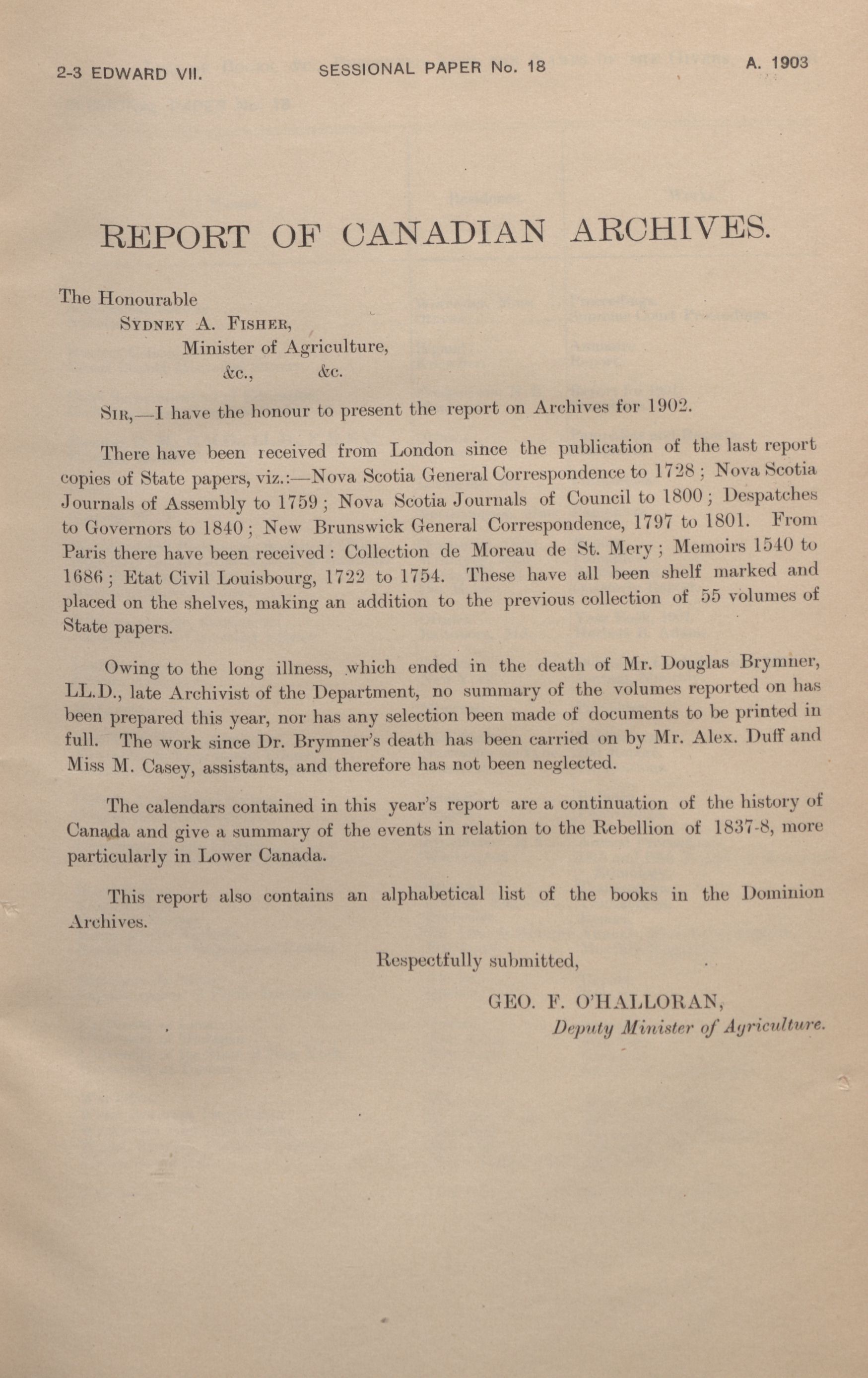Report on Canadian Archives : 1902