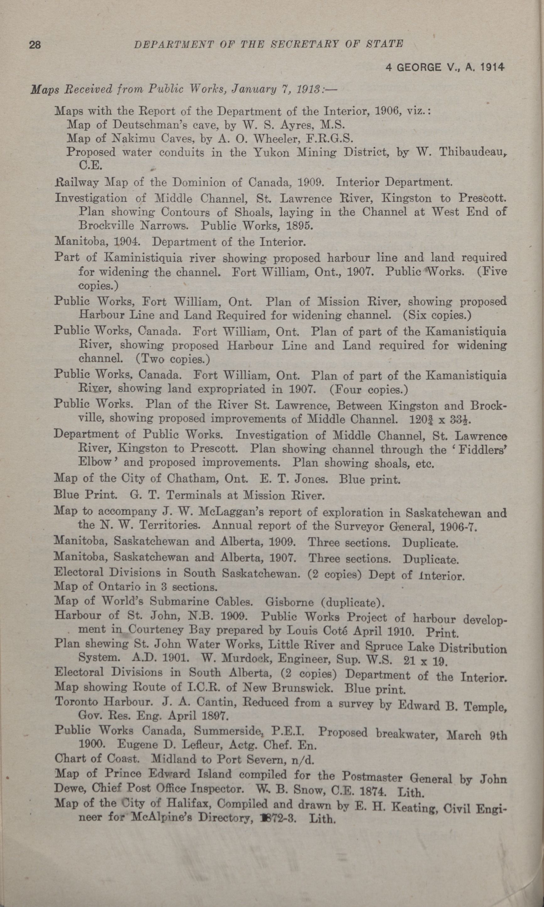- Ottawa : Printed by J. de L. Taché, printer to the King's Most Excellent Majesty, 1914