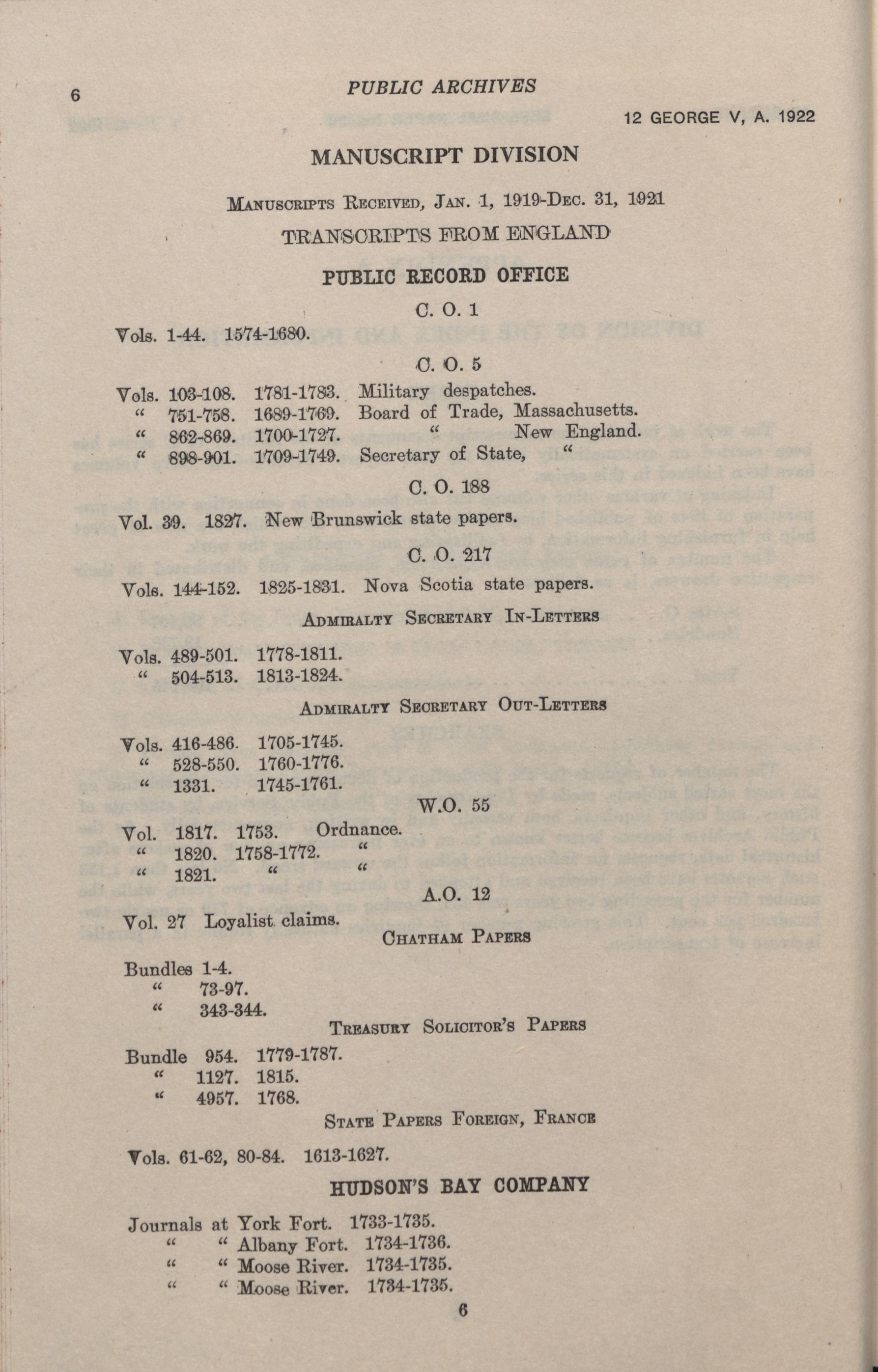 Report of the Public Archives for the year 1921 : 1919/20/21