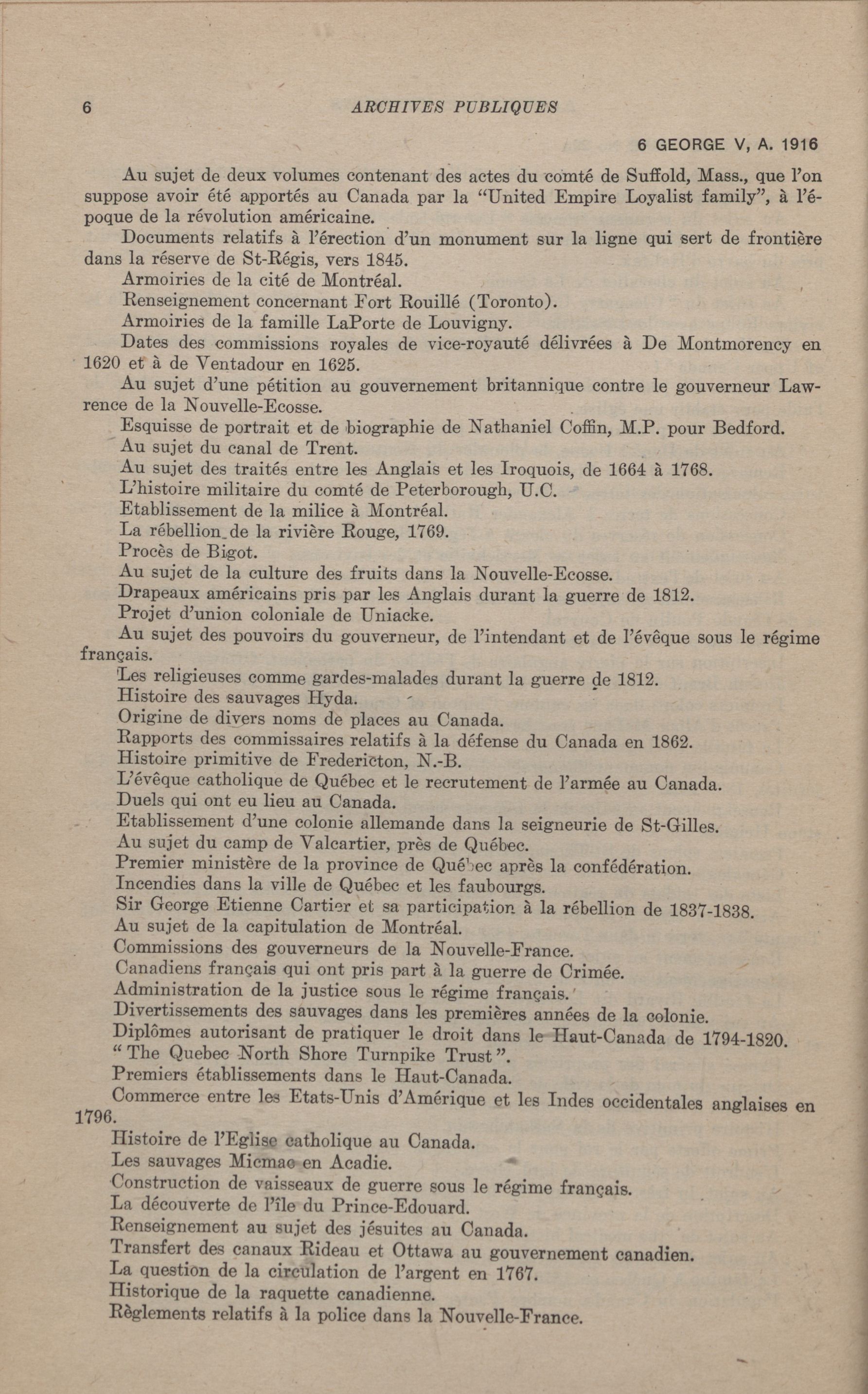 Rapport concernant les travaux des archives publiques pour les années 1914 et 1915 : 1914/15