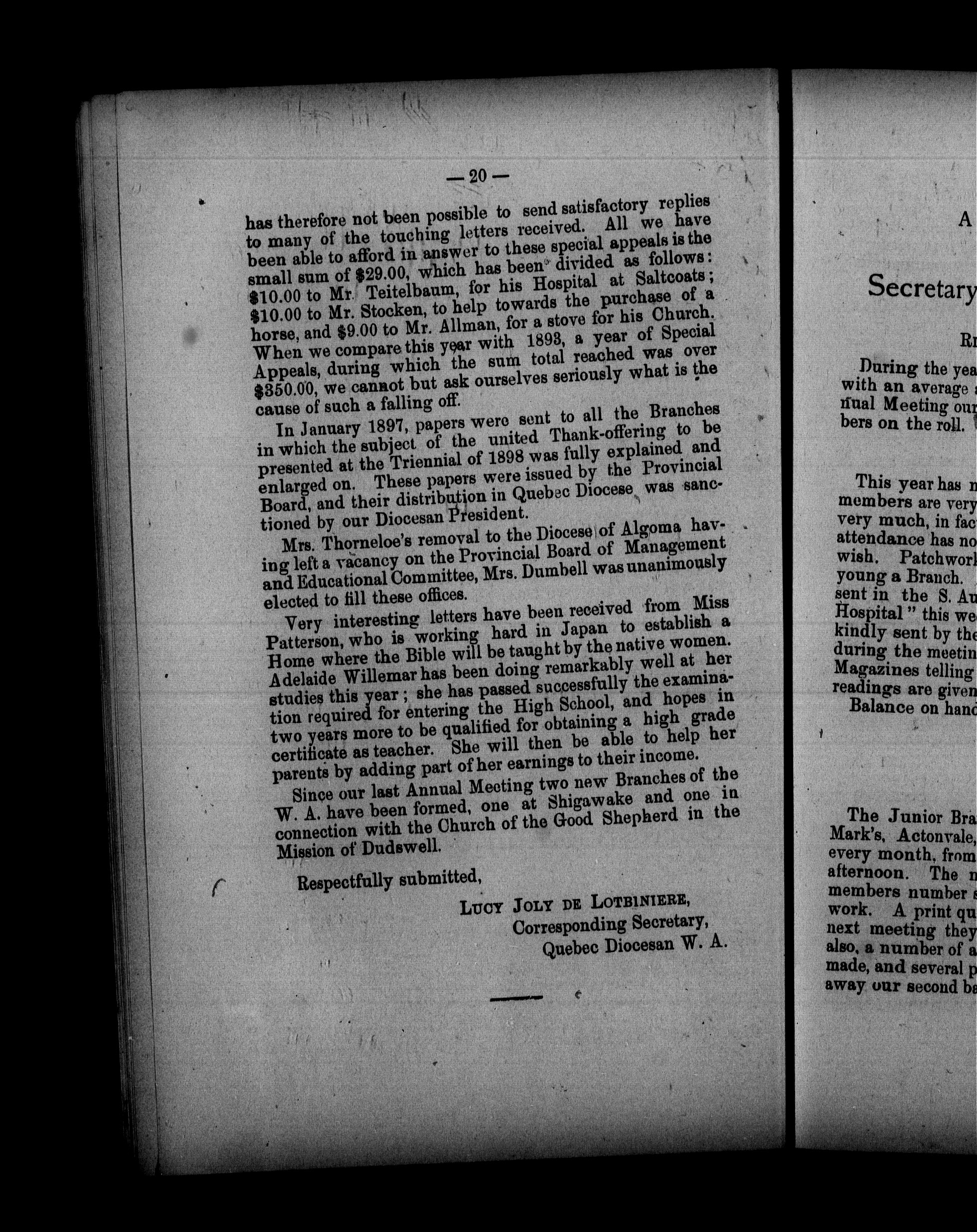 [Québec] : [Quebec Diocesan Branch of the Woman's Auxiliary to the Board of the Domestic & Foreign Missionary Society of the Church of England in Canada], 1897
