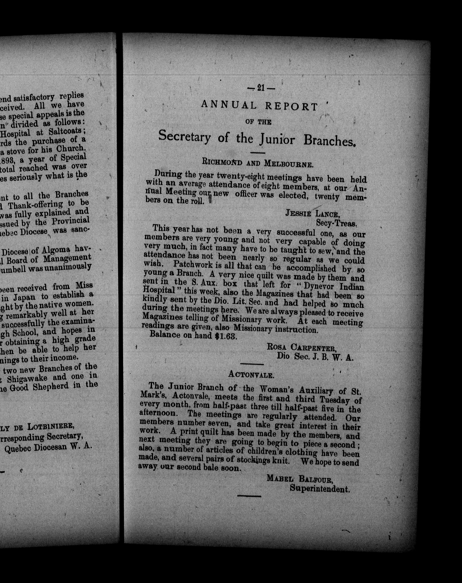 - [Québec] : [Quebec Diocesan Branch of the Woman's Auxiliary to the Board of the Domestic & Foreign Missionary Society of the Church of England in Canada], 1897