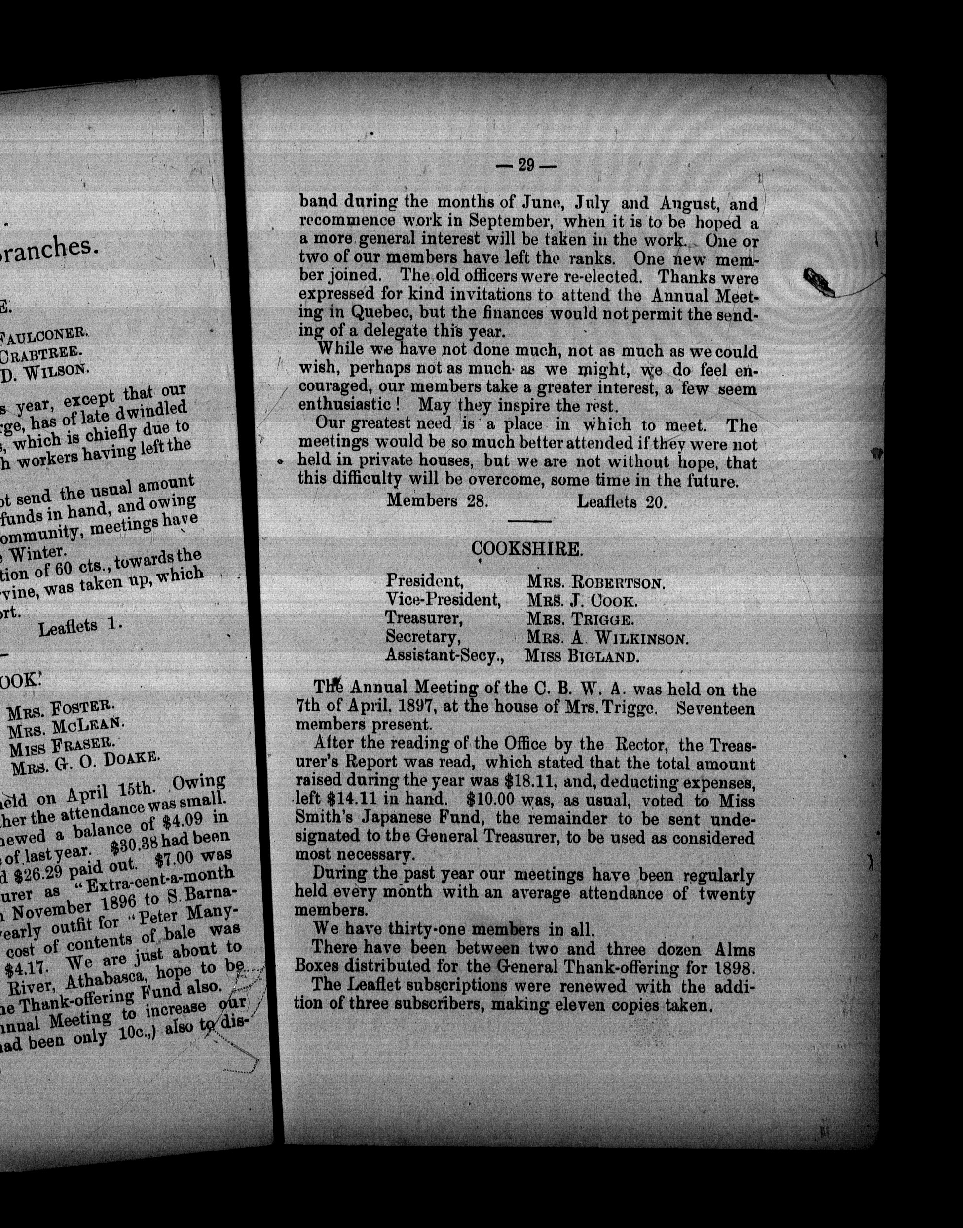 - [Québec] : [Quebec Diocesan Branch of the Woman's Auxiliary to the Board of the Domestic & Foreign Missionary Society of the Church of England in Canada], 1897