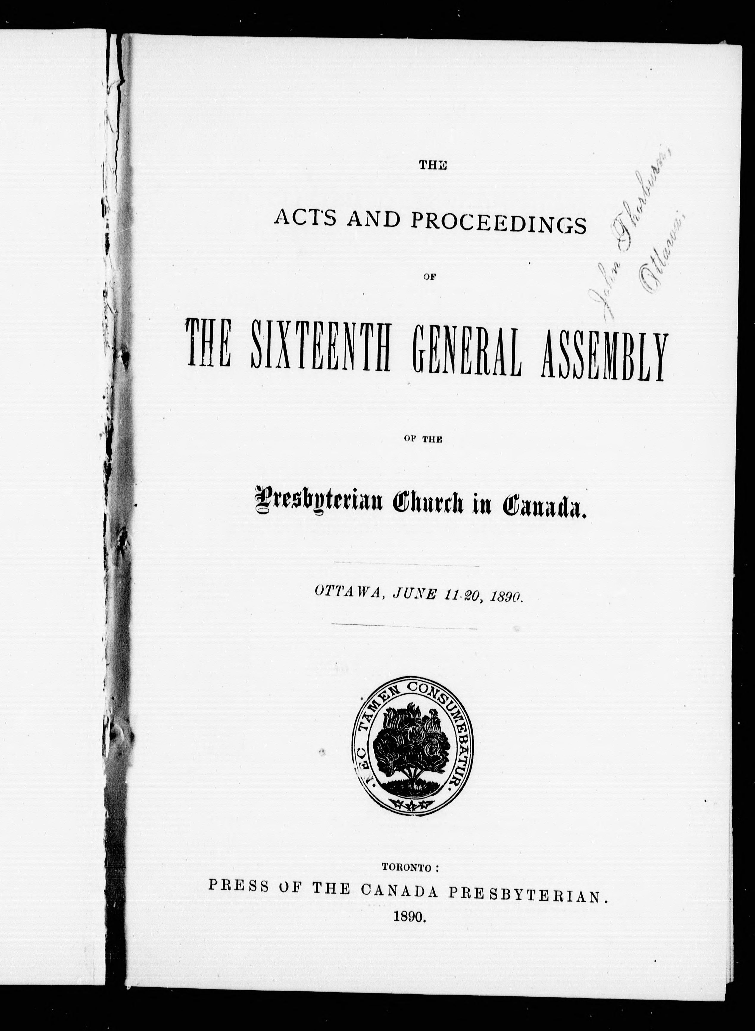 [Toronto?]: [General Assembly of the Presbyterian Church in Canada], 1890; 548 images, 542 with full-text search
