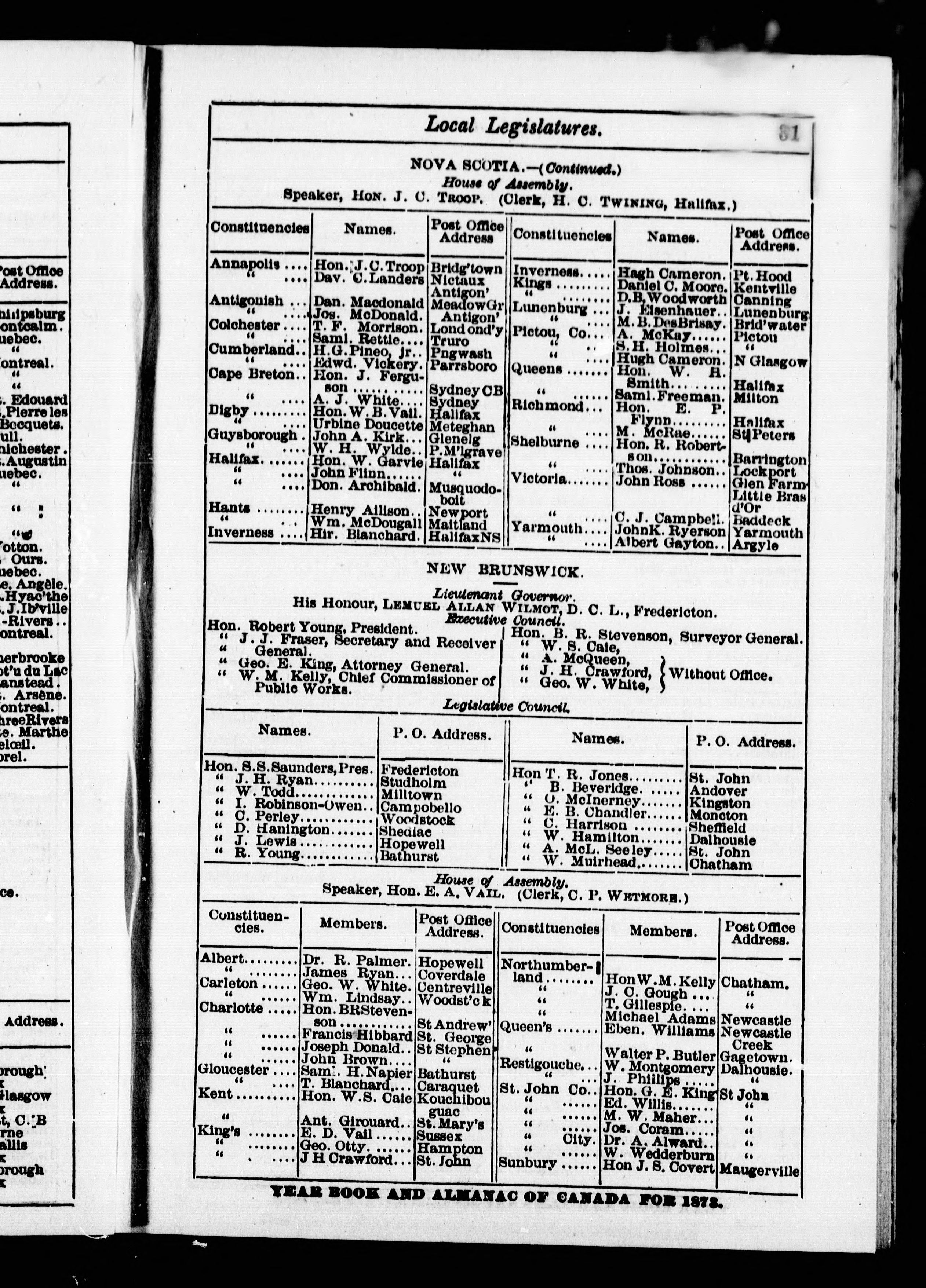 The year book and almanac of Canada for 1873 : being an annual statistical abstract for the Dominion, and a record of legislation and of public men in British North America : 1873