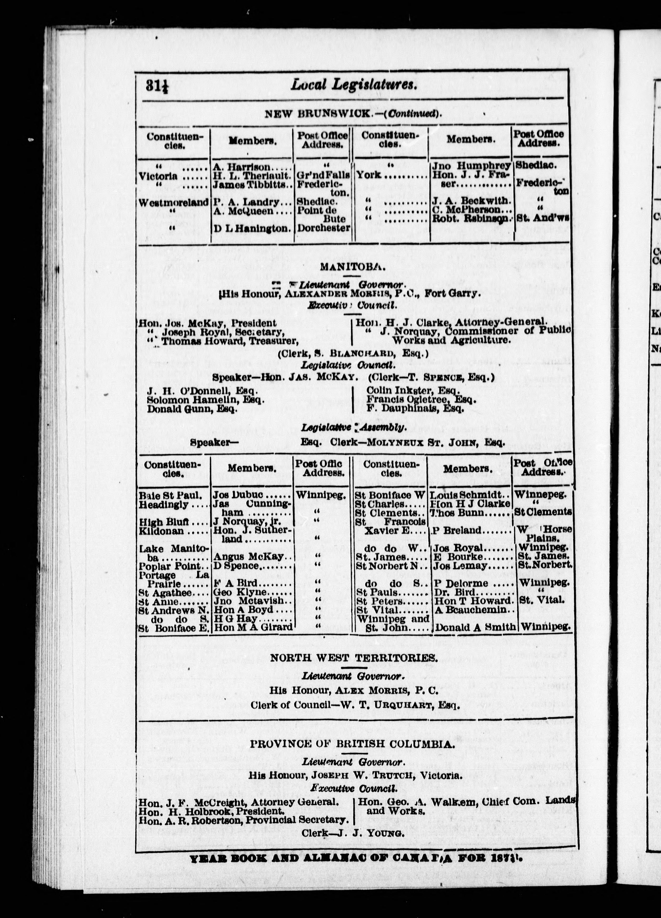 The year book and almanac of Canada for 1873 : being an annual statistical abstract for the Dominion, and a record of legislation and of public men in British North America : 1873