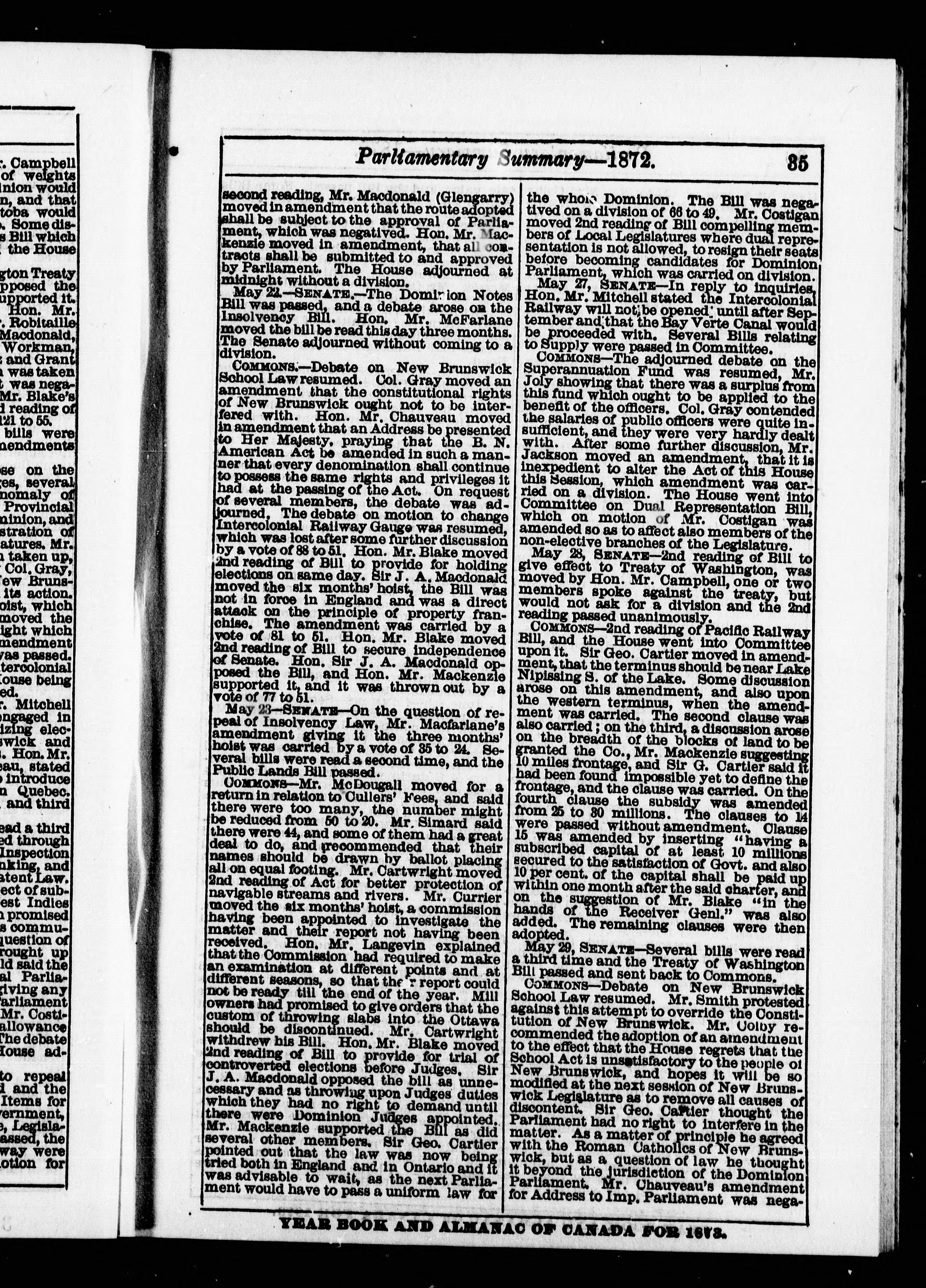 The year book and almanac of Canada for 1873 : being an annual statistical abstract for the Dominion, and a record of legislation and of public men in British North America : 1873