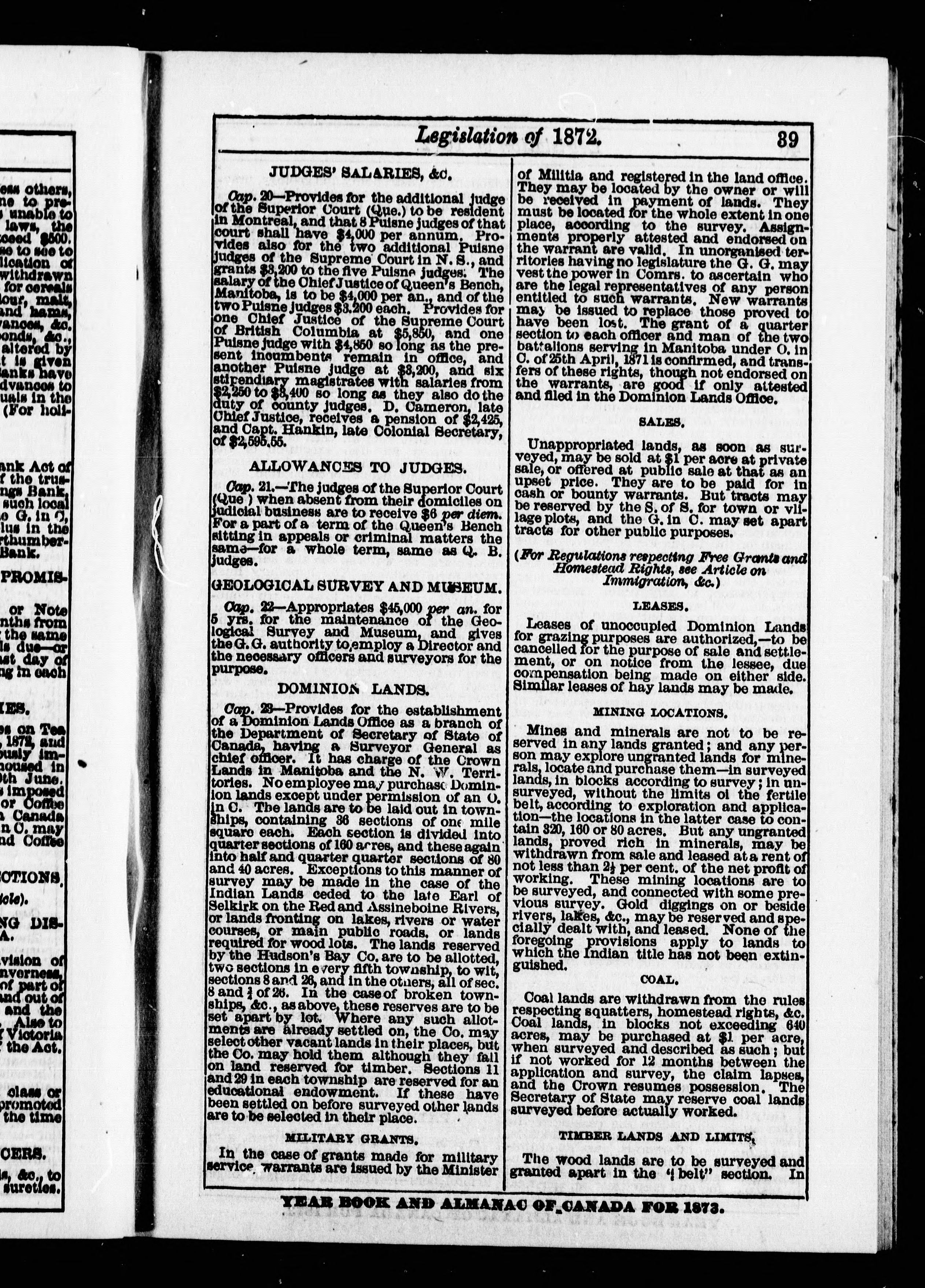 The year book and almanac of Canada for 1873 : being an annual statistical abstract for the Dominion, and a record of legislation and of public men in British North America : 1873