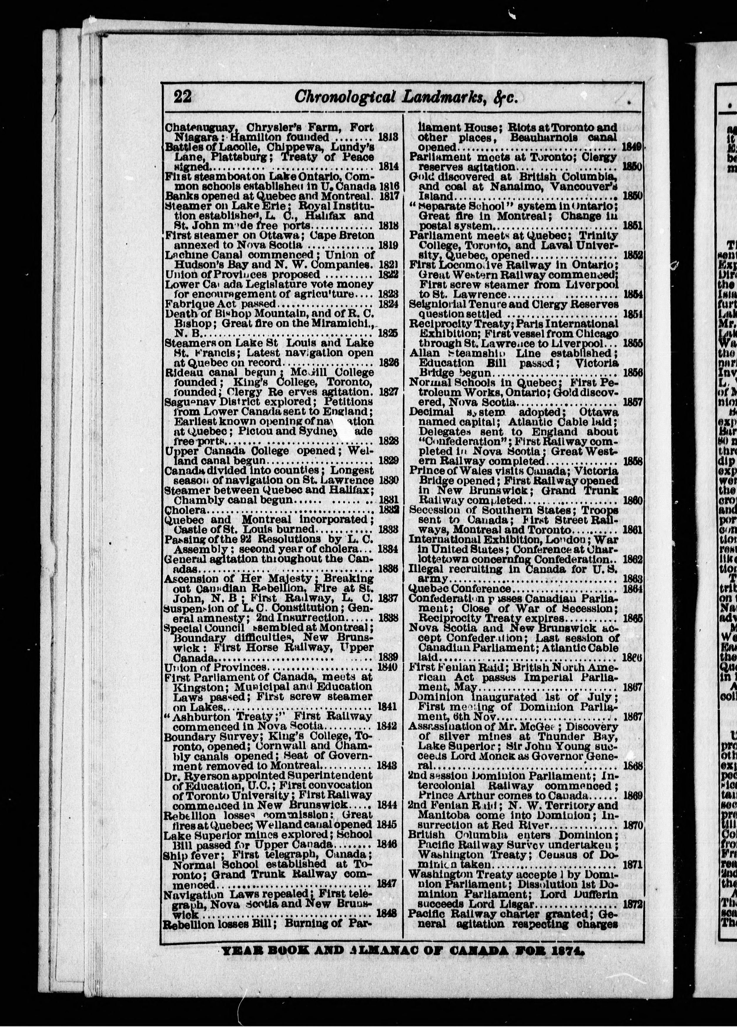 The year book and almanac of Canada for 1874 : being an annual statistical abstract of the Dominion, and a register of legislation and of public men in British North America : 1874