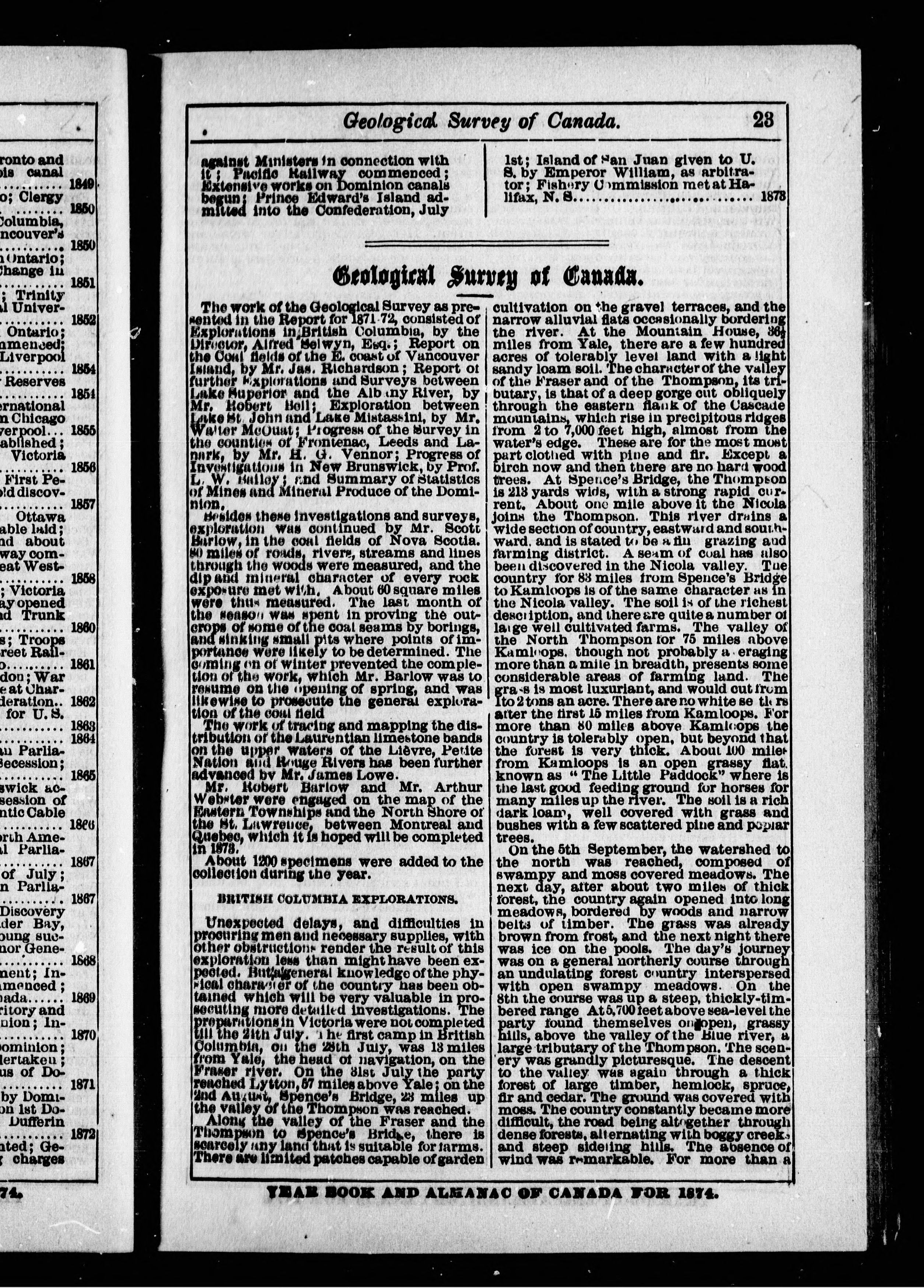 The year book and almanac of Canada for 1874 : being an annual statistical abstract of the Dominion, and a register of legislation and of public men in British North America : 1874