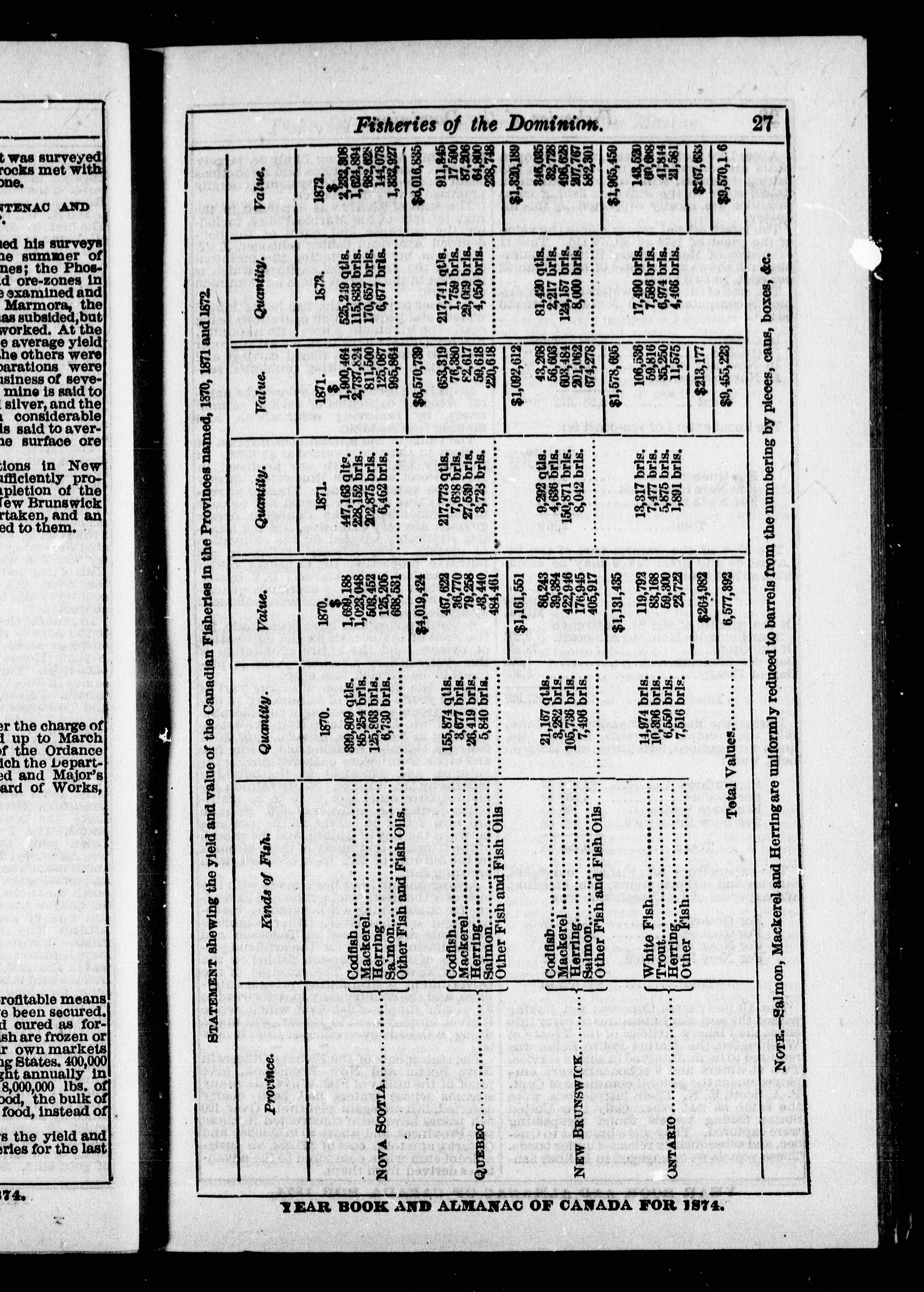 The year book and almanac of Canada for 1874 : being an annual statistical abstract of the Dominion, and a register of legislation and of public men in British North America : 1874