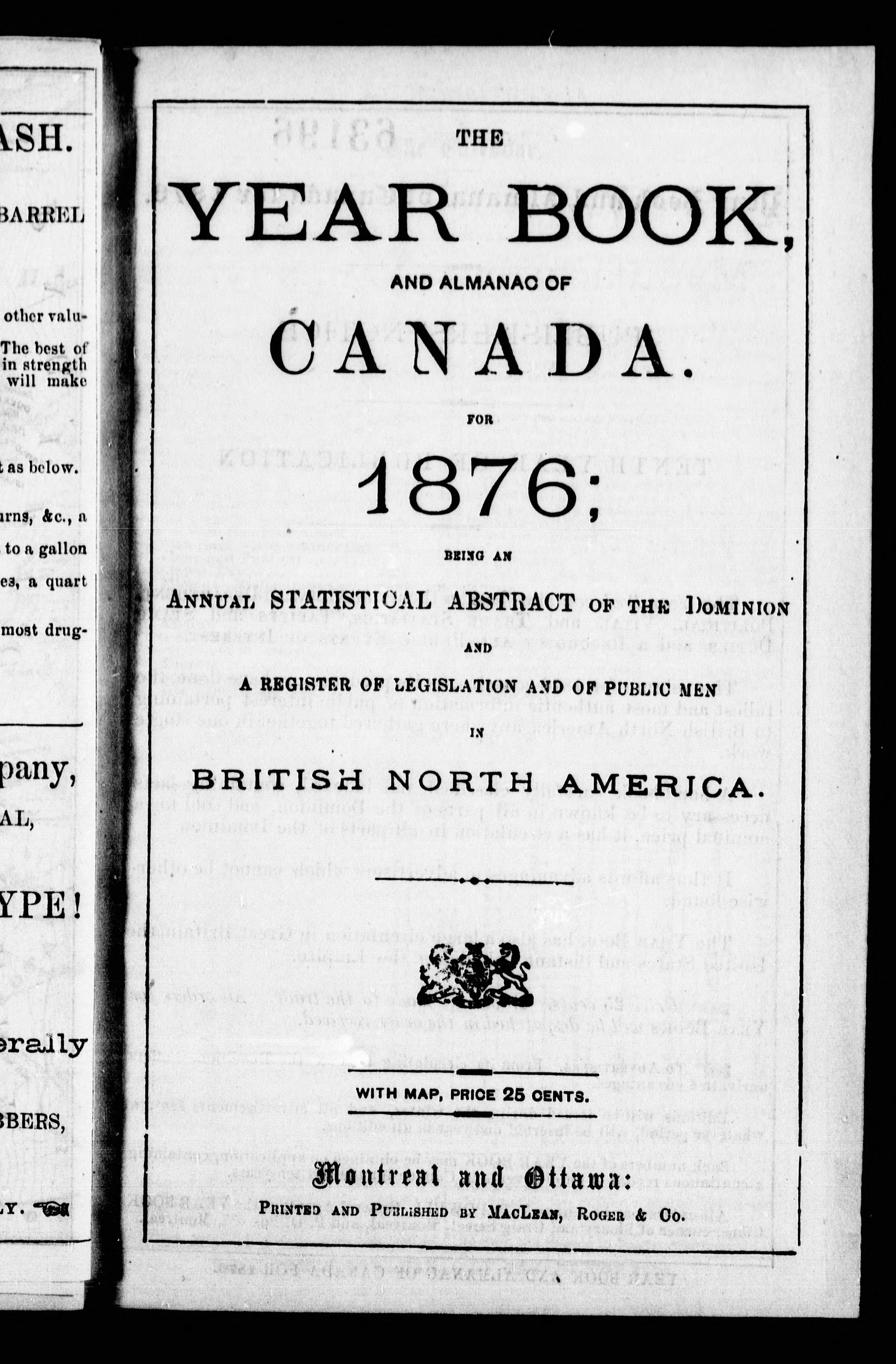 The year book and almanac of Canada for 1876 : being an annual statistical abstract of the Dominion, and a register of legislation and of public men in British North America : 1876