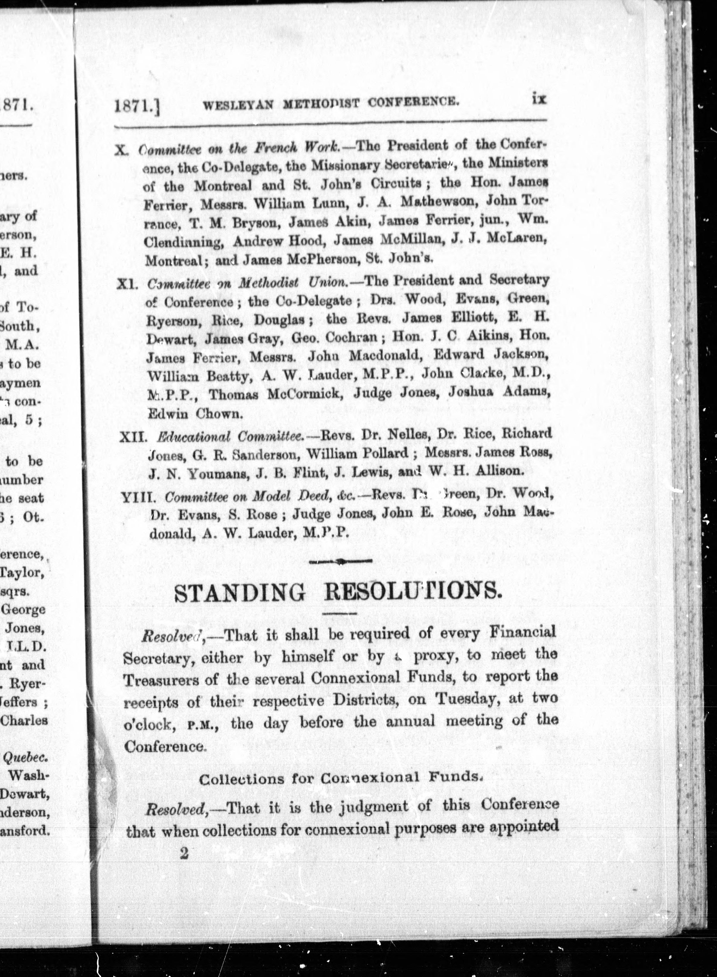 Minutes of the forty-eighth annual conference of the Wesleyan Methodist Church in Canada : held in the Bridge Street Church, town of Belleville, Ont., begun on Wednesday, June 7th, and concluded on Friday, June 16th, 1871 : Forty-Eighth (1871)