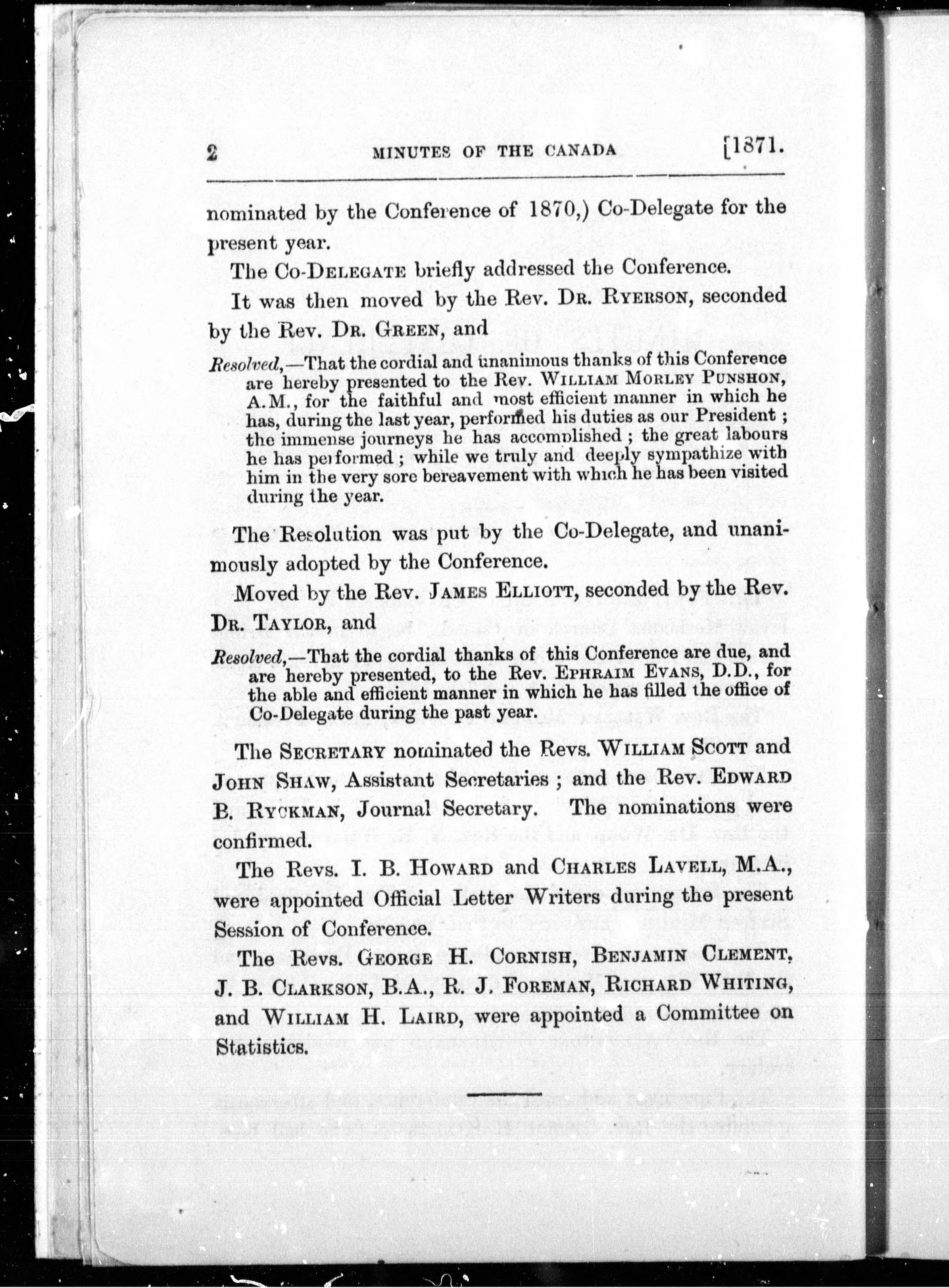 Minutes of the forty-eighth annual conference of the Wesleyan Methodist Church in Canada : held in the Bridge Street Church, town of Belleville, Ont., begun on Wednesday, June 7th, and concluded on Friday, June 16th, 1871 : Forty-Eighth (1871)