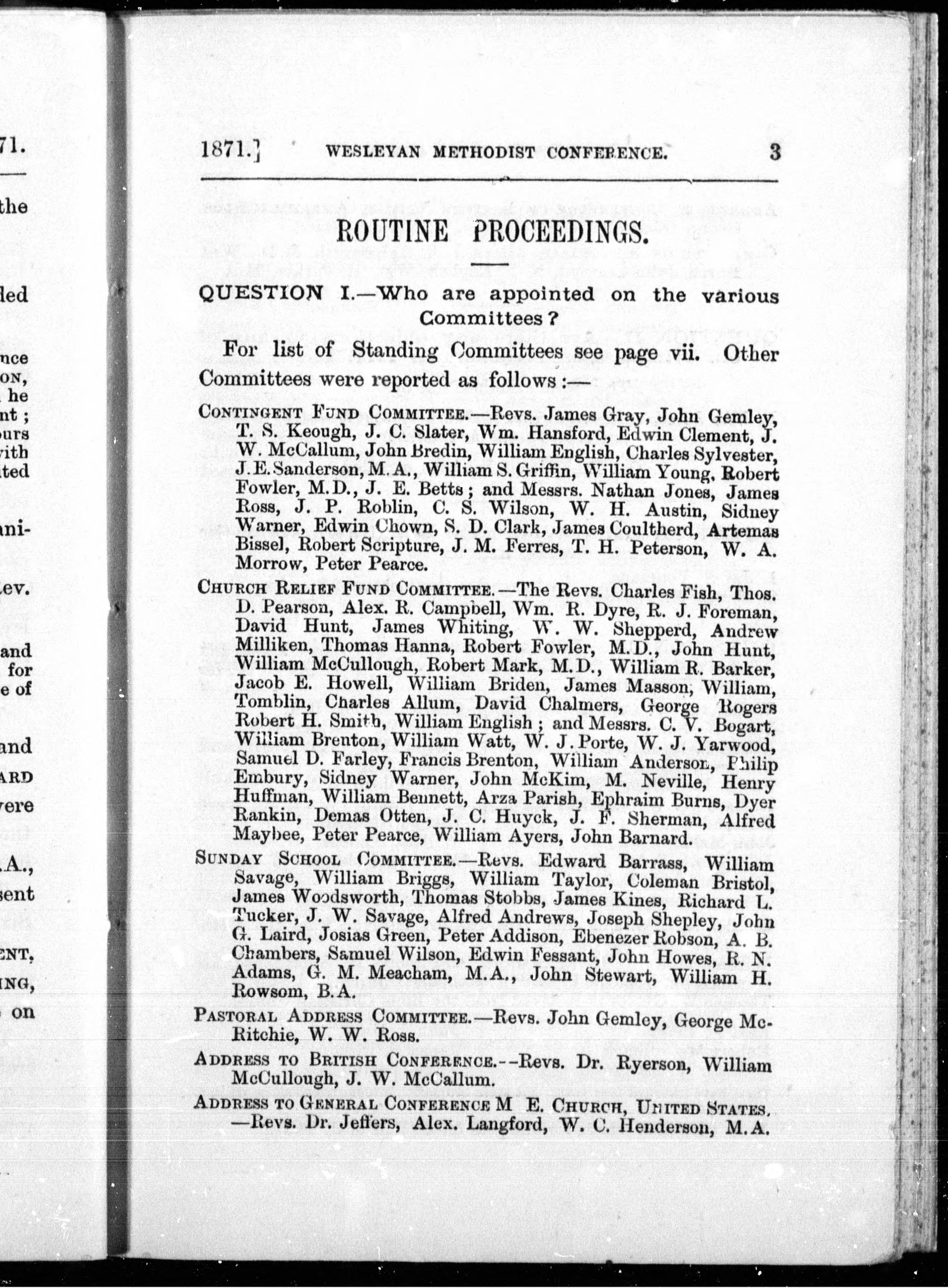 Minutes of the forty-eighth annual conference of the Wesleyan Methodist Church in Canada : held in the Bridge Street Church, town of Belleville, Ont., begun on Wednesday, June 7th, and concluded on Friday, June 16th, 1871 : Forty-Eighth (1871)