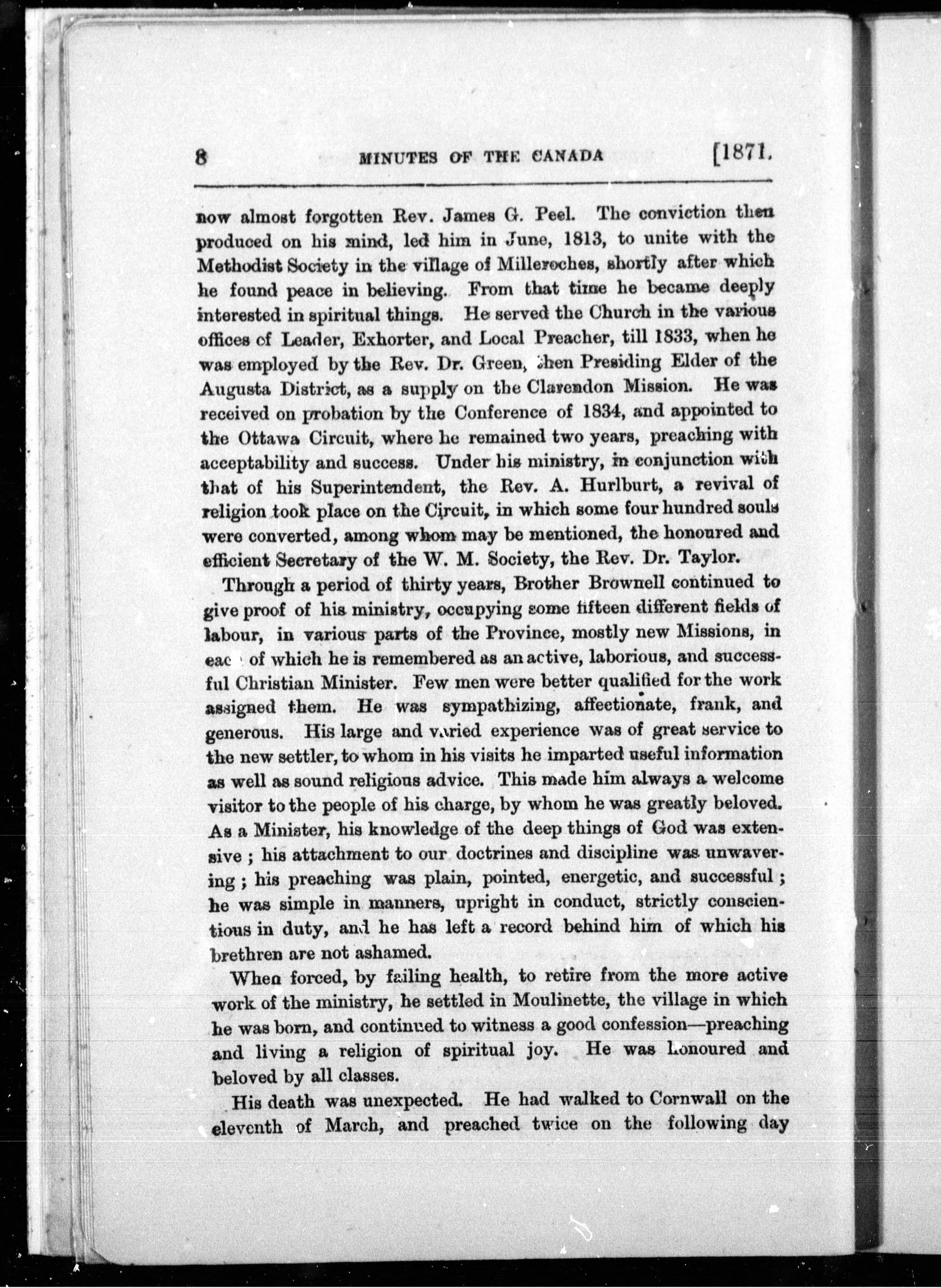 Minutes of the forty-eighth annual conference of the Wesleyan Methodist Church in Canada : held in the Bridge Street Church, town of Belleville, Ont., begun on Wednesday, June 7th, and concluded on Friday, June 16th, 1871 : Forty-Eighth (1871)