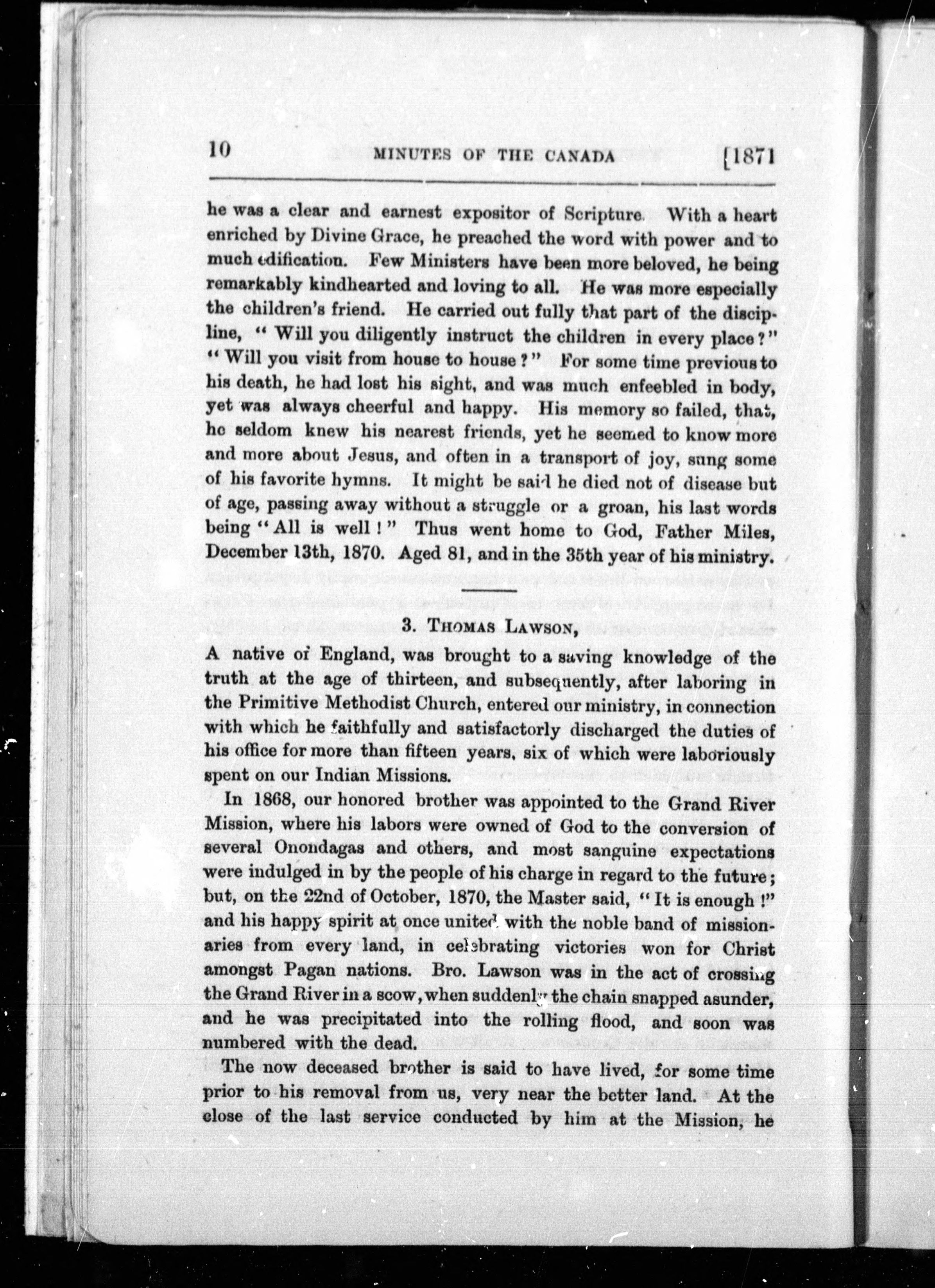 Minutes of the forty-eighth annual conference of the Wesleyan Methodist Church in Canada : held in the Bridge Street Church, town of Belleville, Ont., begun on Wednesday, June 7th, and concluded on Friday, June 16th, 1871 : Forty-Eighth (1871)