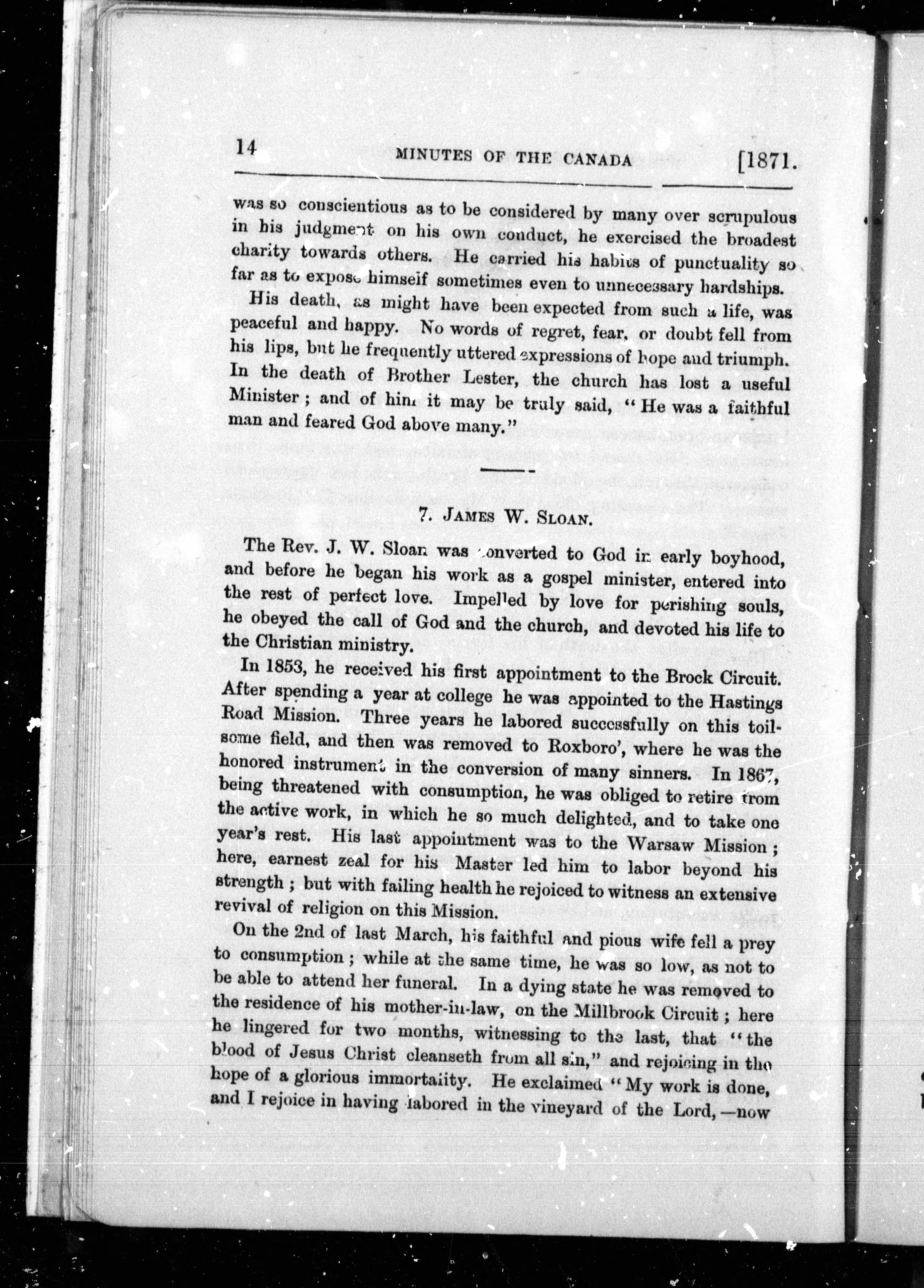 Minutes of the forty-eighth annual conference of the Wesleyan Methodist Church in Canada : held in the Bridge Street Church, town of Belleville, Ont., begun on Wednesday, June 7th, and concluded on Friday, June 16th, 1871 : Forty-Eighth (1871)