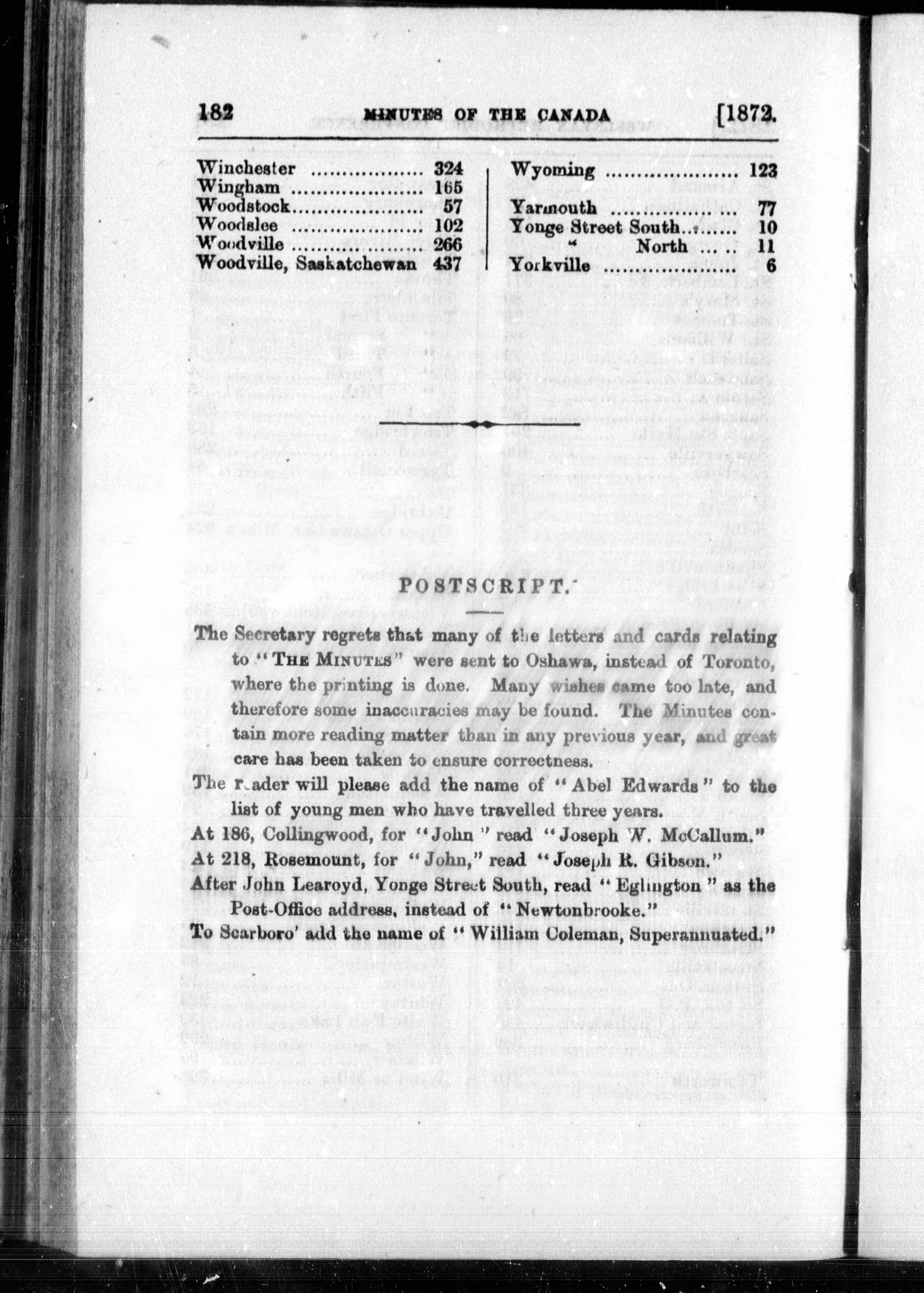 Minutes of the forty-ninth annual conference of the Wesleyan Methodist Church in Canada : held in the St. James Street Church, city of Montreal, begun on Wednesday, June 5th, and concluded on Friday, June 14th, 1872 : Forty-Ninth (1872)