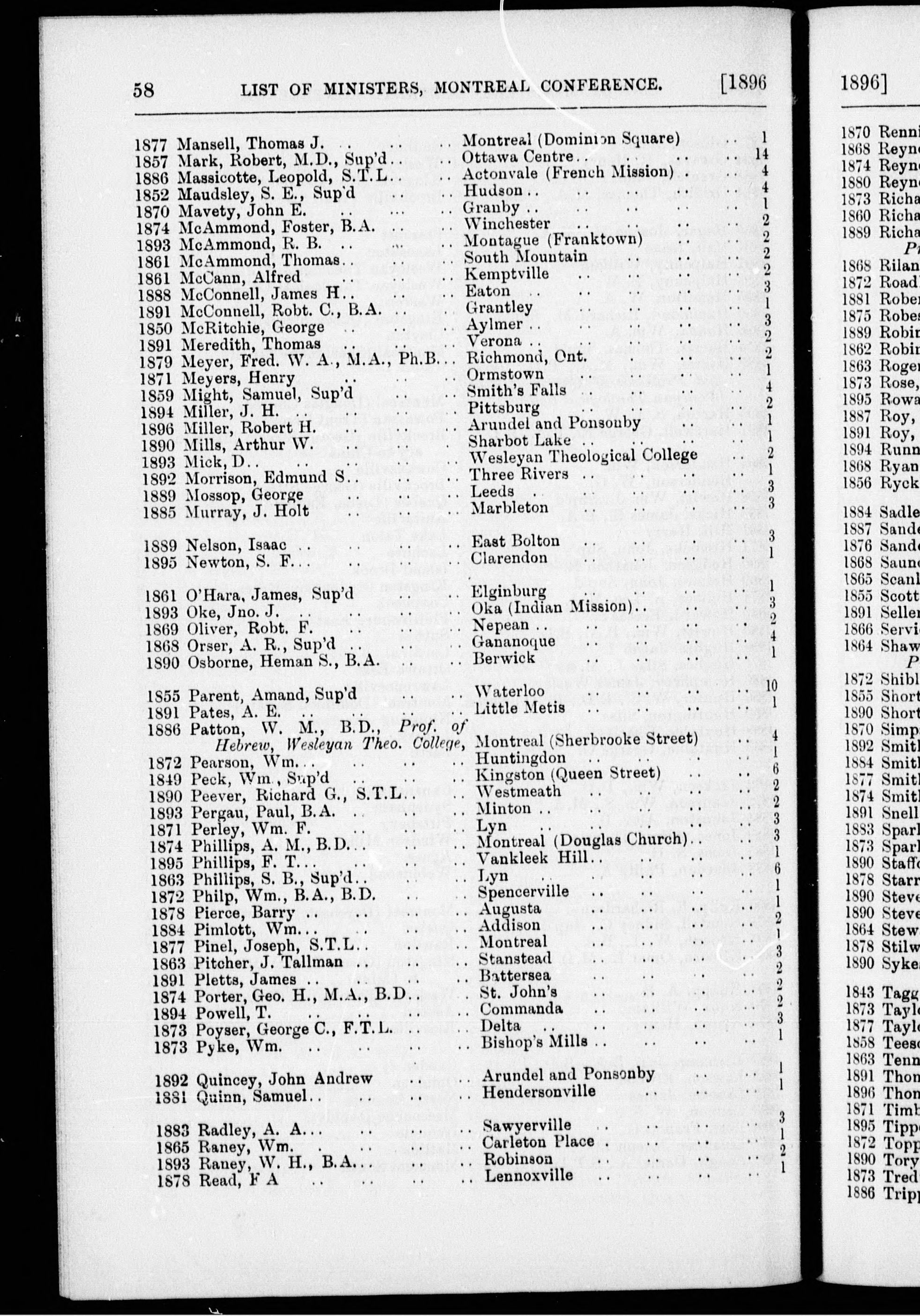 Minutes of the proceedings of the ... session of the British Columbia Conference of the Methodist Church : Minutes of the proceedings of the tenth session of the British Columbia Annual Conference of the Methodist Church : held in the Central Methodist Church, New Westminster, B.C., commencing Thursday, May 14th, and continuing until Wednesday, May 20th, 1896 : Tenth (1896)