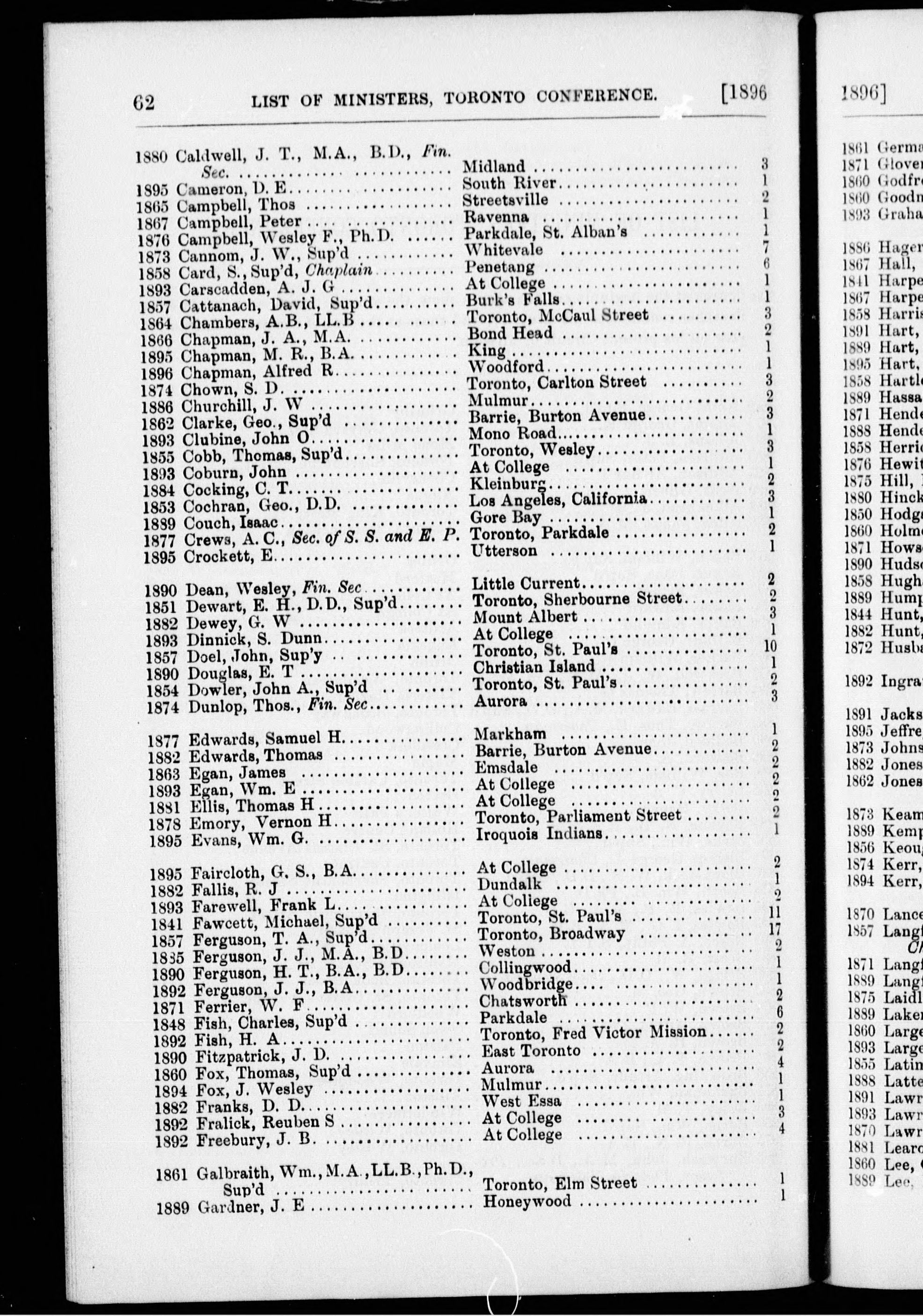 - Minutes of the proceedings of the tenth session of the British Columbia Annual Conference of the Methodist Church : held in the Central Methodist Church, New Westminster, B.C., commencing Thursday, May 14th, and continuing until Wednesday, May 20th, 1896 : Tenth (1896)