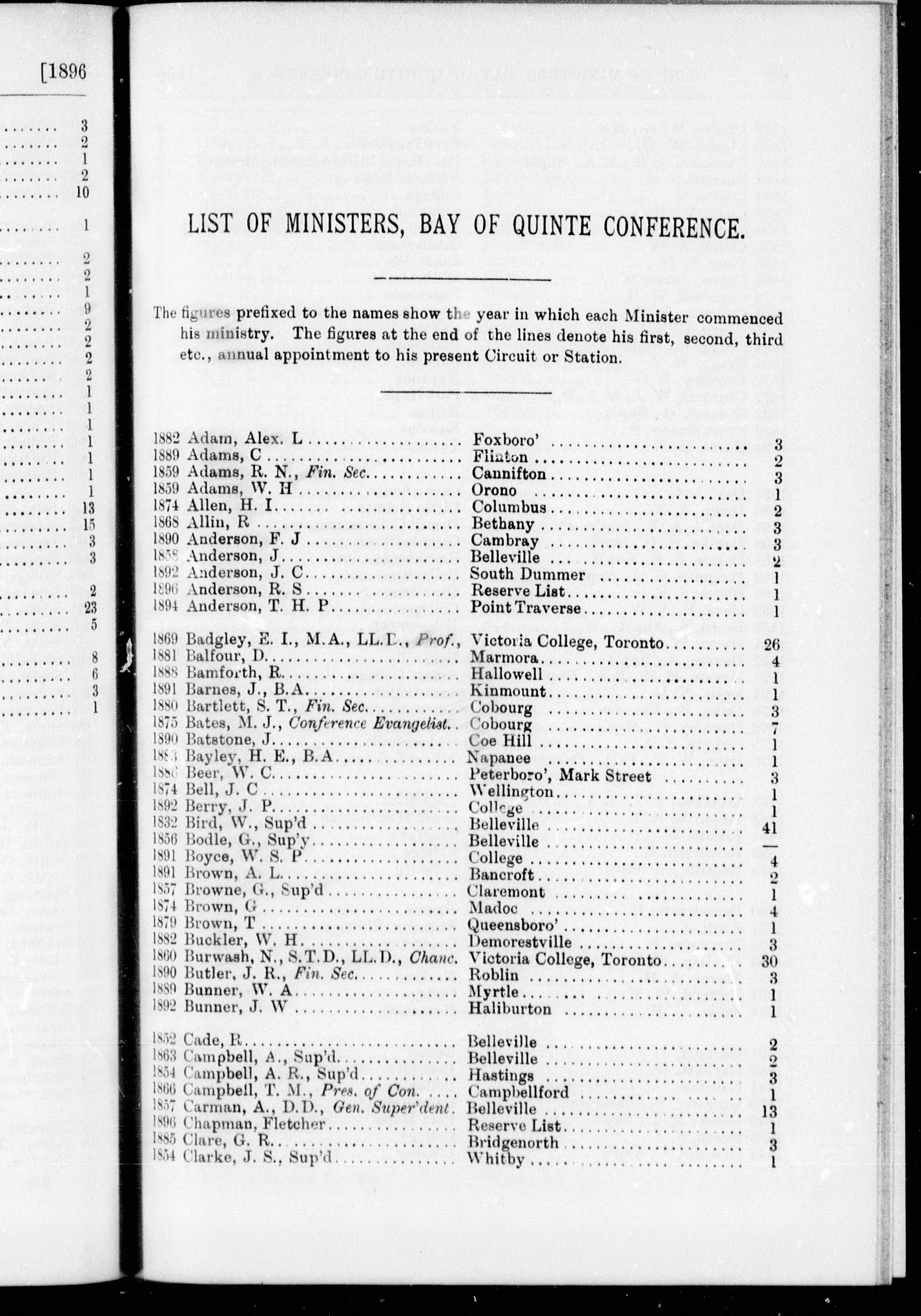 Minutes of the proceedings of the ... session of the British Columbia Conference of the Methodist Church : Minutes of the proceedings of the tenth session of the British Columbia Annual Conference of the Methodist Church : held in the Central Methodist Church, New Westminster, B.C., commencing Thursday, May 14th, and continuing until Wednesday, May 20th, 1896 : Tenth (1896)