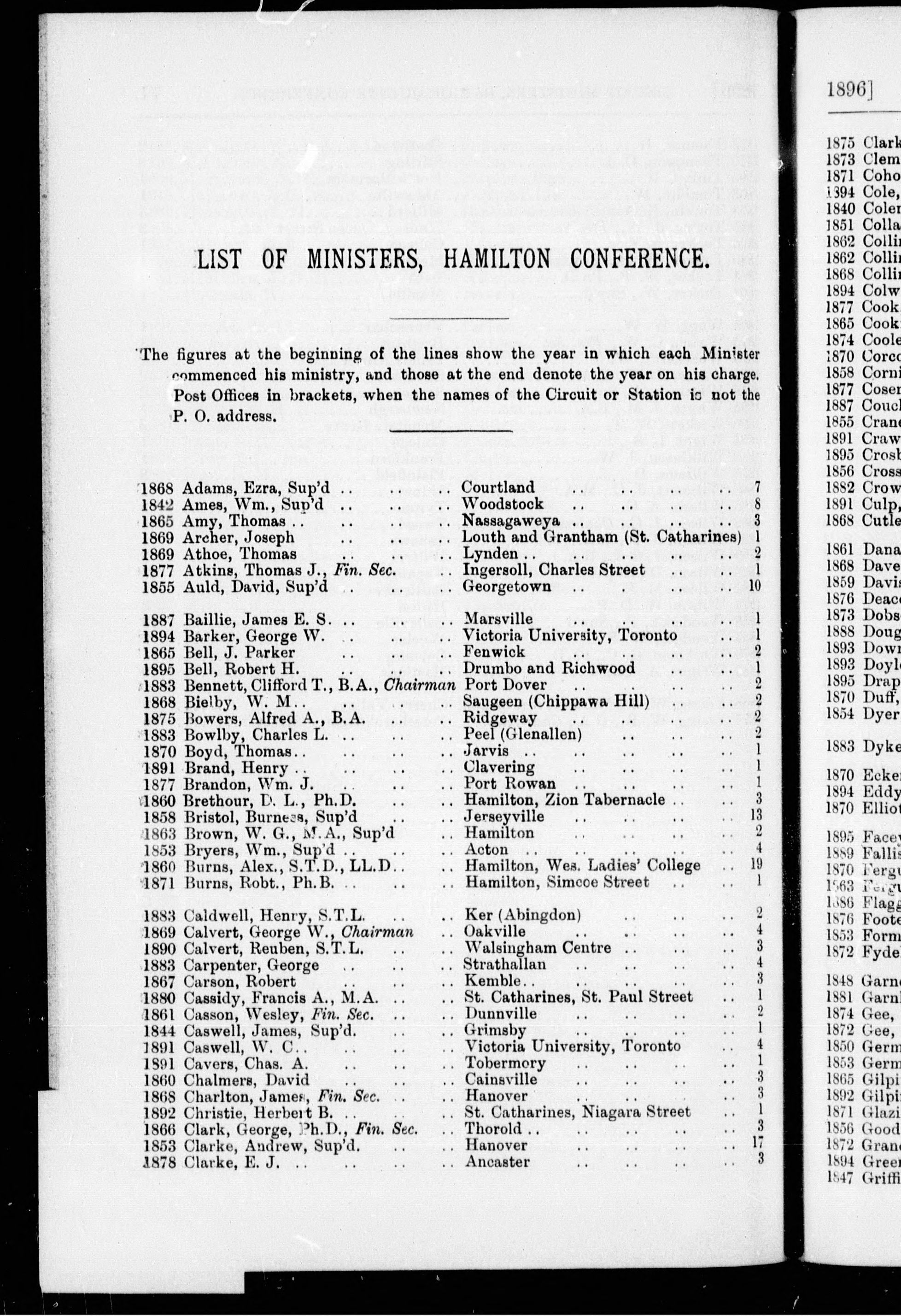 Minutes of the proceedings of the ... session of the British Columbia Conference of the Methodist Church : Minutes of the proceedings of the tenth session of the British Columbia Annual Conference of the Methodist Church : held in the Central Methodist Church, New Westminster, B.C., commencing Thursday, May 14th, and continuing until Wednesday, May 20th, 1896 : Tenth (1896)