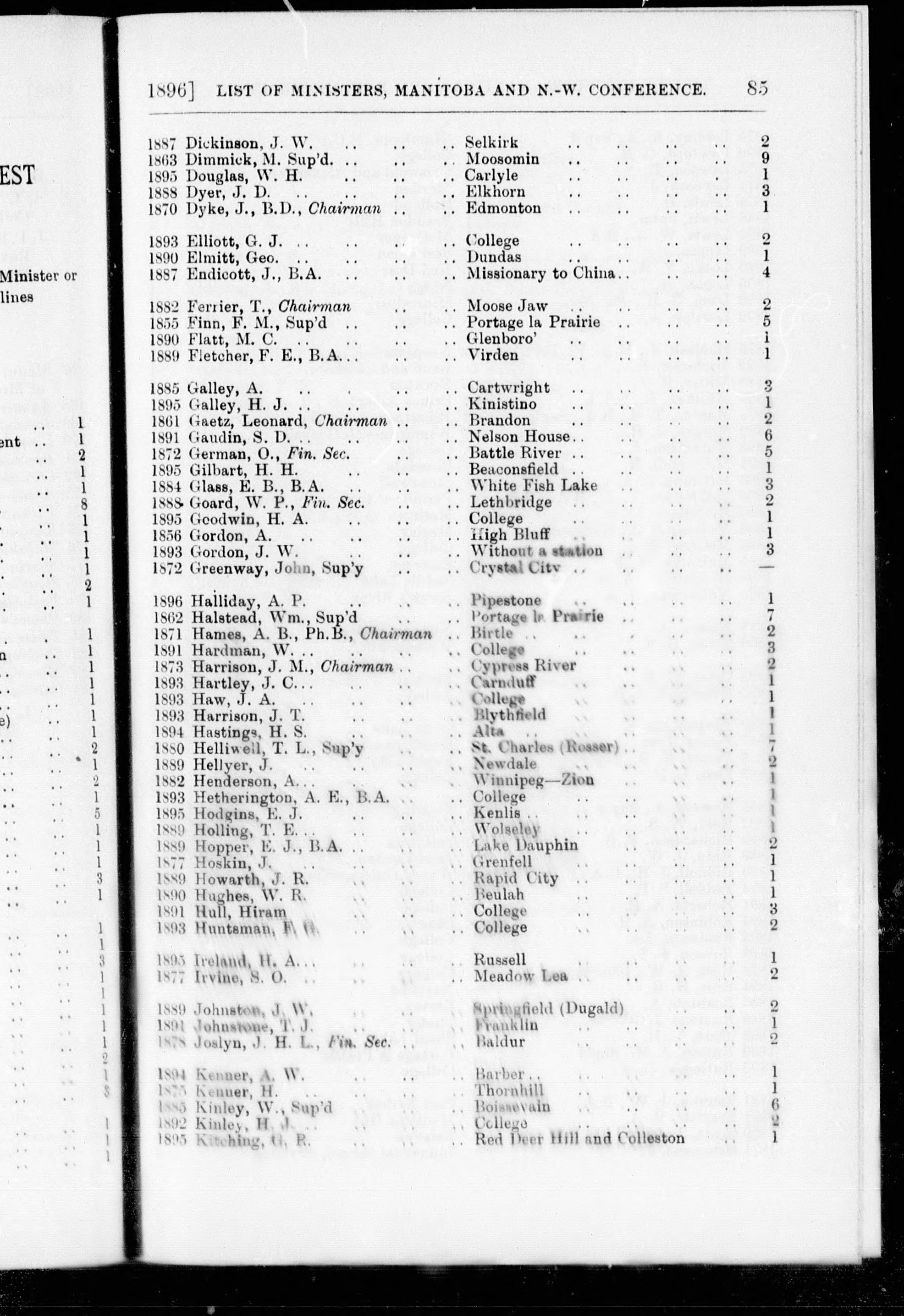 Minutes of the proceedings of the ... session of the British Columbia Conference of the Methodist Church : Minutes of the proceedings of the tenth session of the British Columbia Annual Conference of the Methodist Church : held in the Central Methodist Church, New Westminster, B.C., commencing Thursday, May 14th, and continuing until Wednesday, May 20th, 1896 : Tenth (1896)