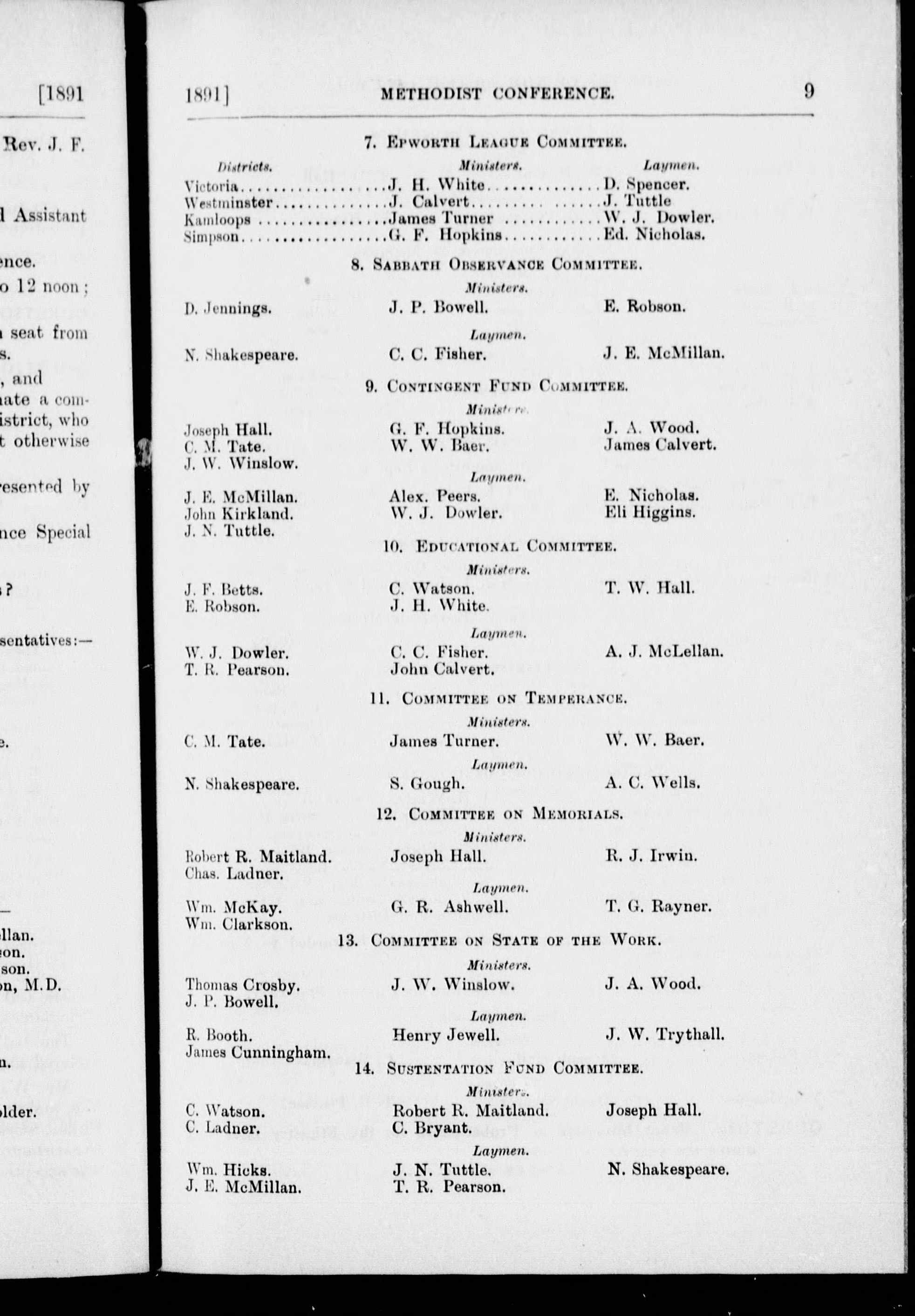 Minutes of the proceedings of the ... session of the British Columbia Conference of the Methodist Church : Minutes of the proceedings of the fifth session of the British Columbia Annual Conference of the Methodist Church : held in Pandora Avenue Methodist Church, Victoria, B.C., from Wednesday June 20th, to Tuesday, June 26th, 1891 : Fifth (1891)