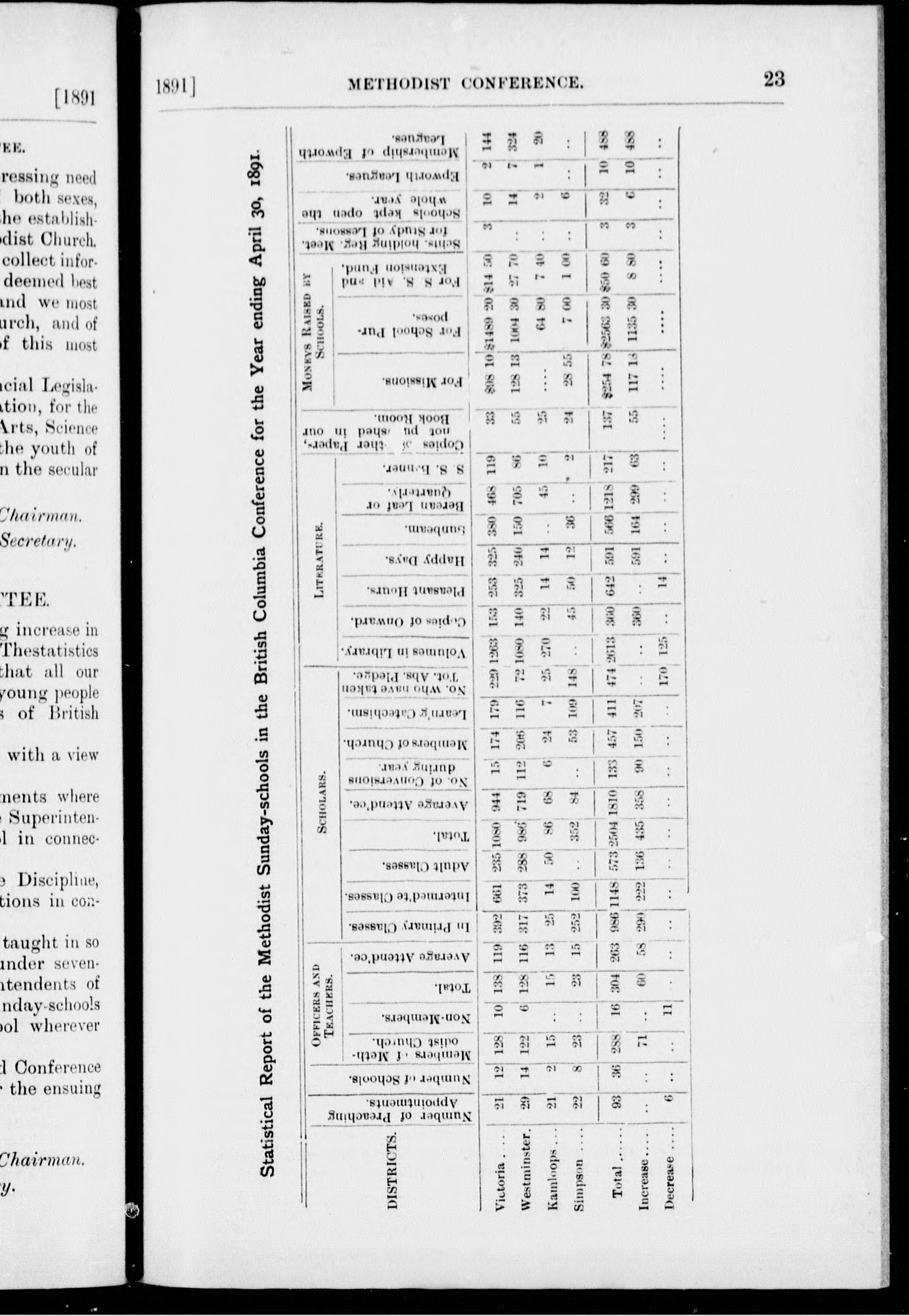 - Minutes of the proceedings of the fifth session of the British Columbia Annual Conference of the Methodist Church : held in Pandora Avenue Methodist Church, Victoria, B.C., from Wednesday June 20th, to Tuesday, June 26th, 1891 : Fifth (1891)