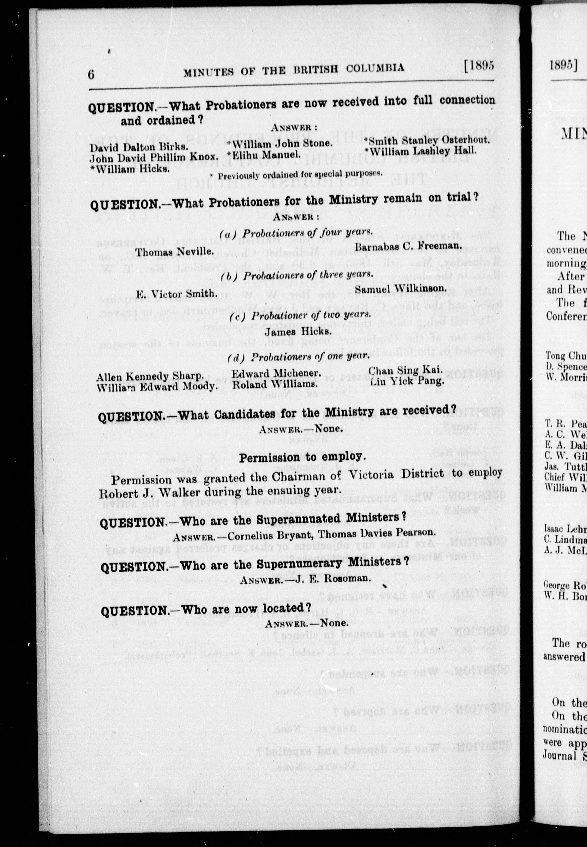 Minutes of the proceedings of the ... session of the British Columbia Conference of the Methodist Church : Minutes of the proceedings of the ninth session of the British Columbia Annual Conference of the Methodist Church : held in Metropolitan Methodist Church, Victoria, B.C., commencing Wednesday, May 8th and continuing until Wednesday, May 15th, 1895 : Ninth (1895)