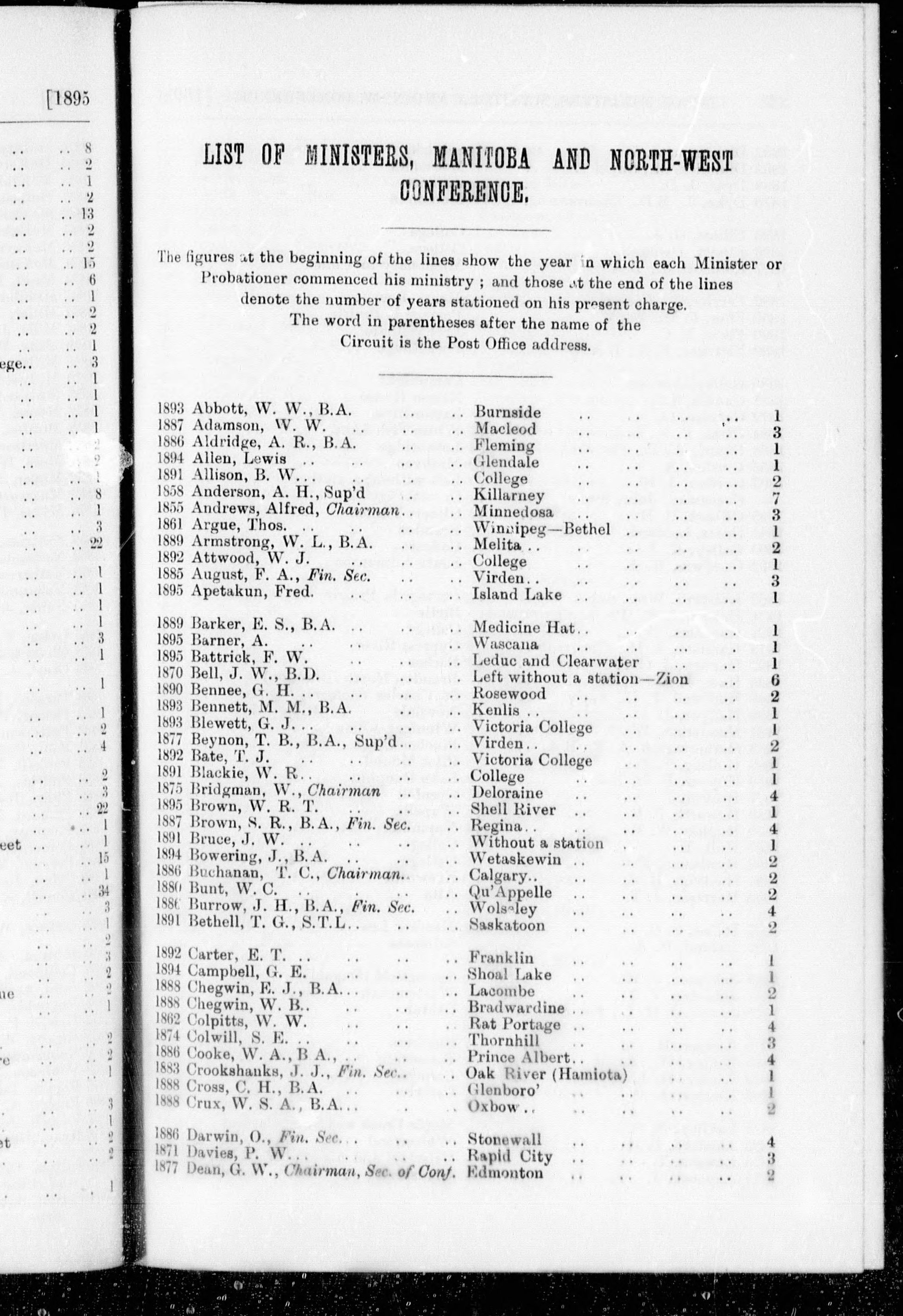 - Minutes of the proceedings of the ninth session of the British Columbia Annual Conference of the Methodist Church : held in Metropolitan Methodist Church, Victoria, B.C., commencing Wednesday, May 8th and continuing until Wednesday, May 15th, 1895 : Ninth (1895)