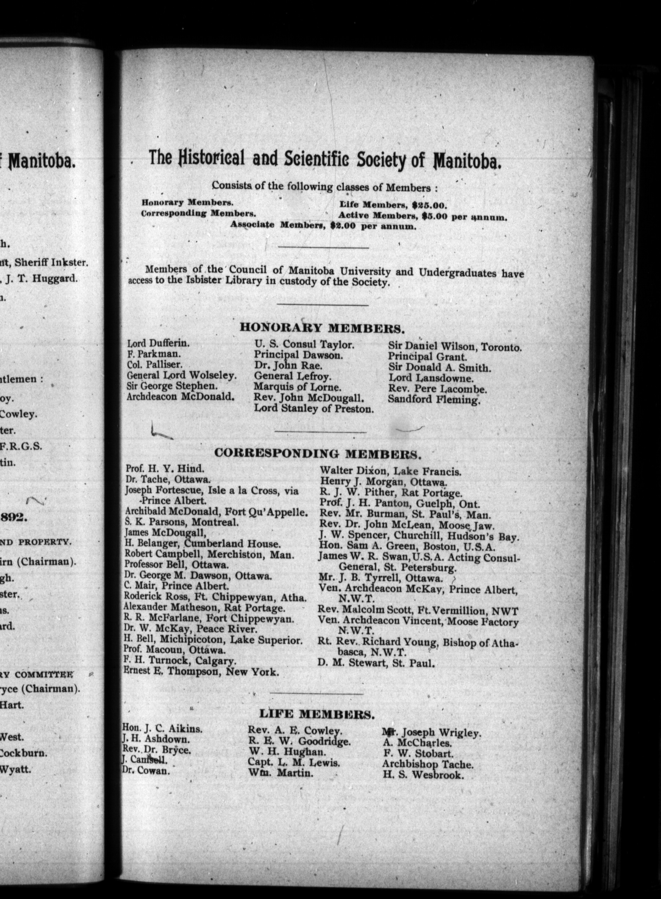 - [Winnipeg]: [Historical and Scientific Society of Manitoba], 1892