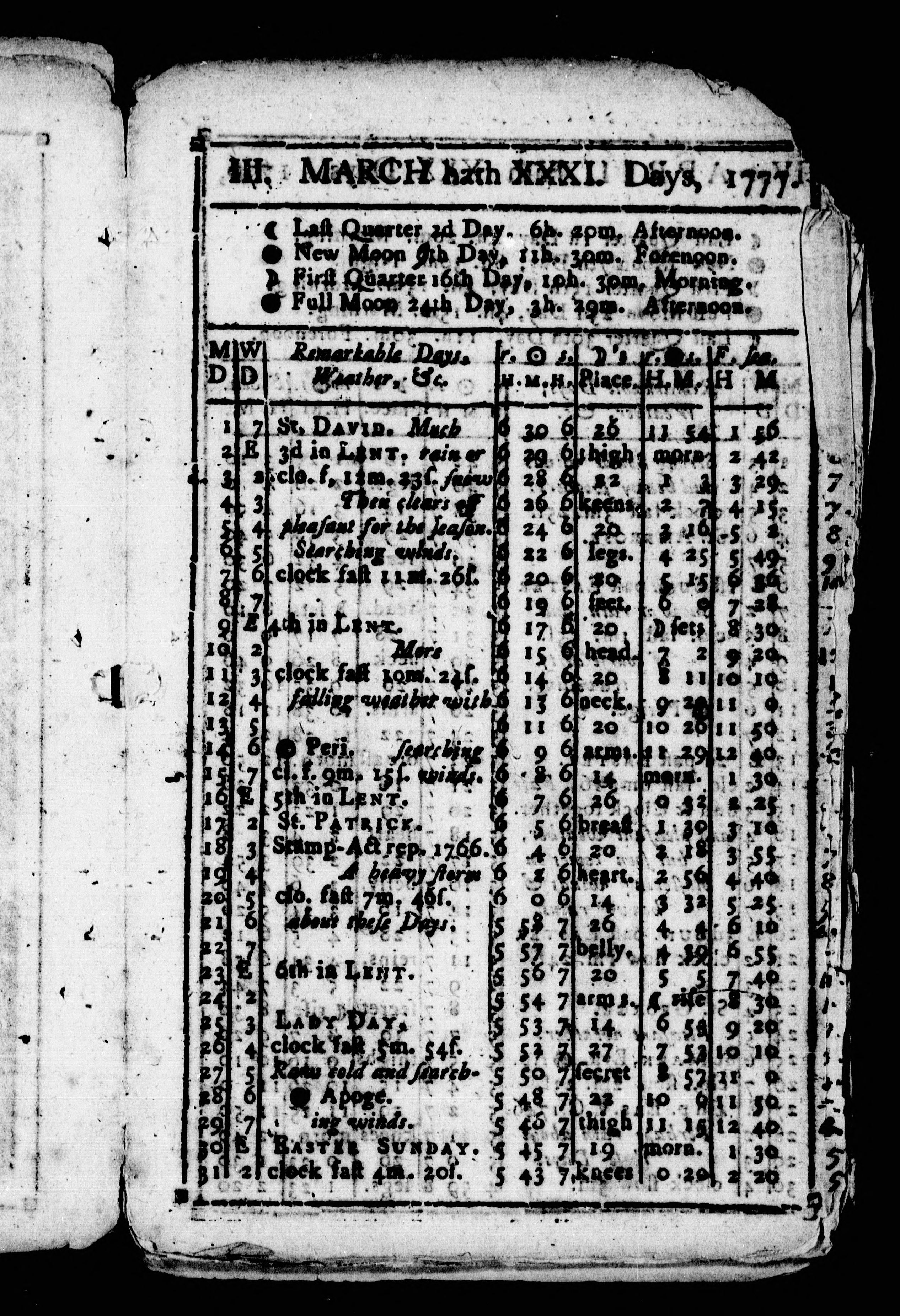 Almanack, for the year of the Christian Era, 1777 - Adresse bibliographique