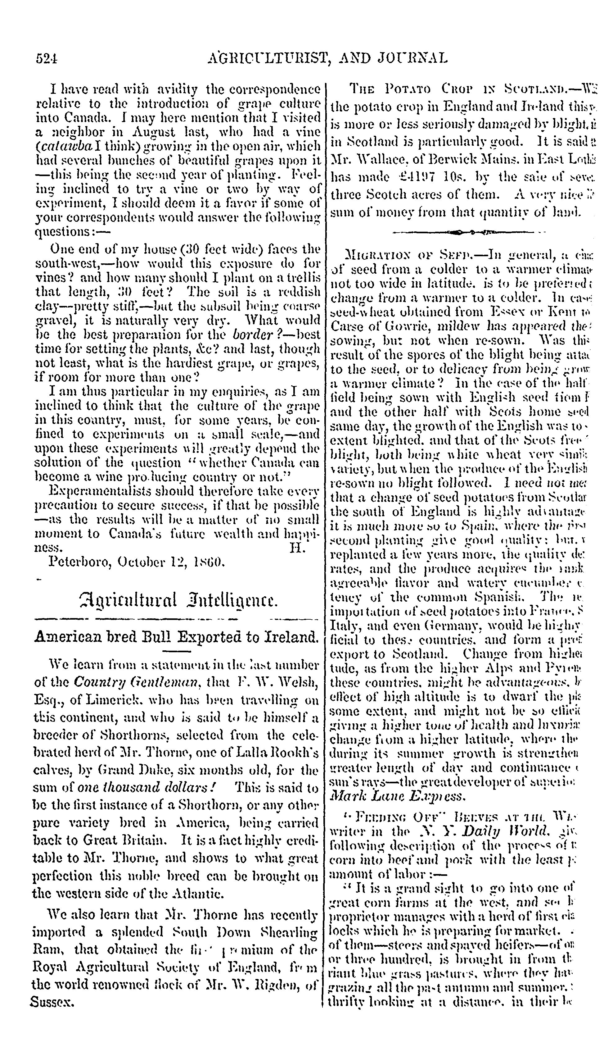 - The Canadian agriculturist, or, [Jou]rnal and transactions of the Board of Agriculture of Upper Canada : Vol. 12, no. 20 (Oct. 15, 1860)